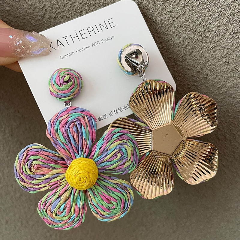 3005 summer dopamine straw color flower ear clip 2