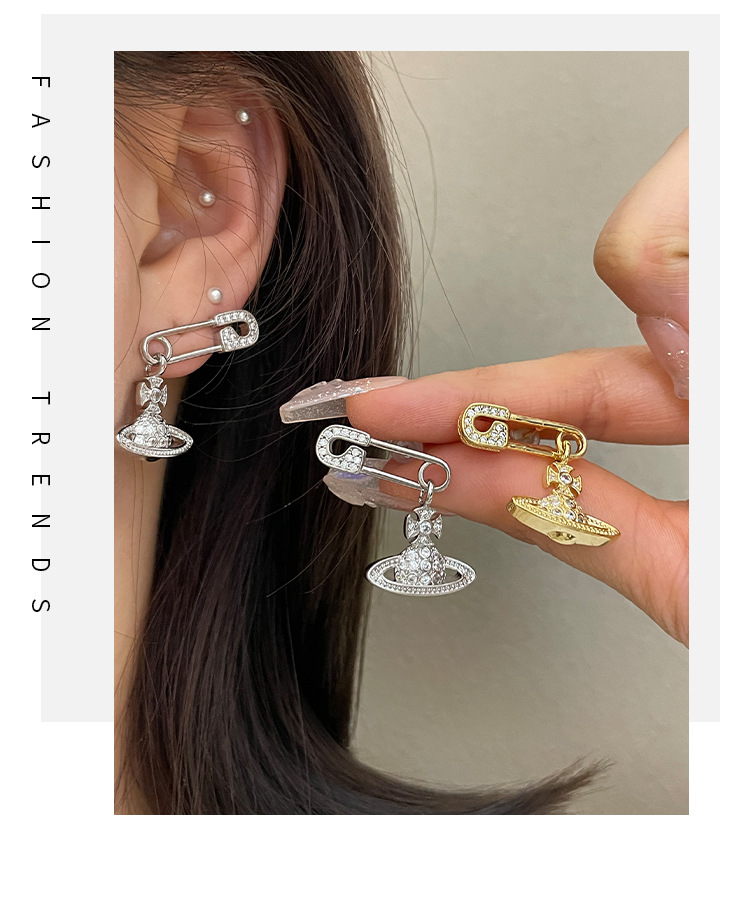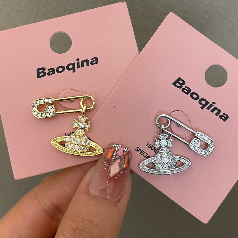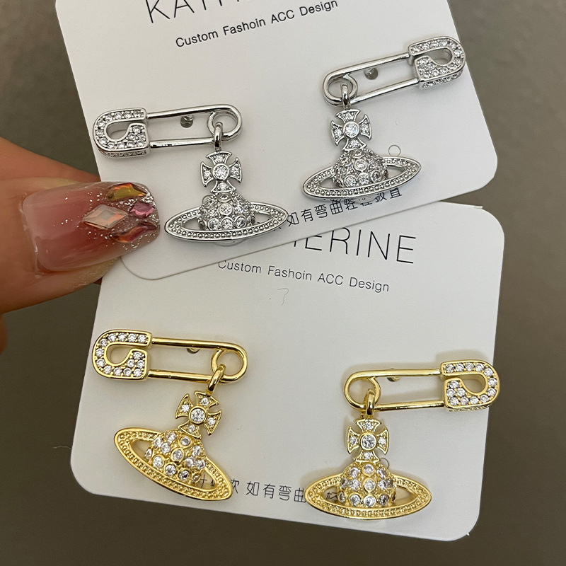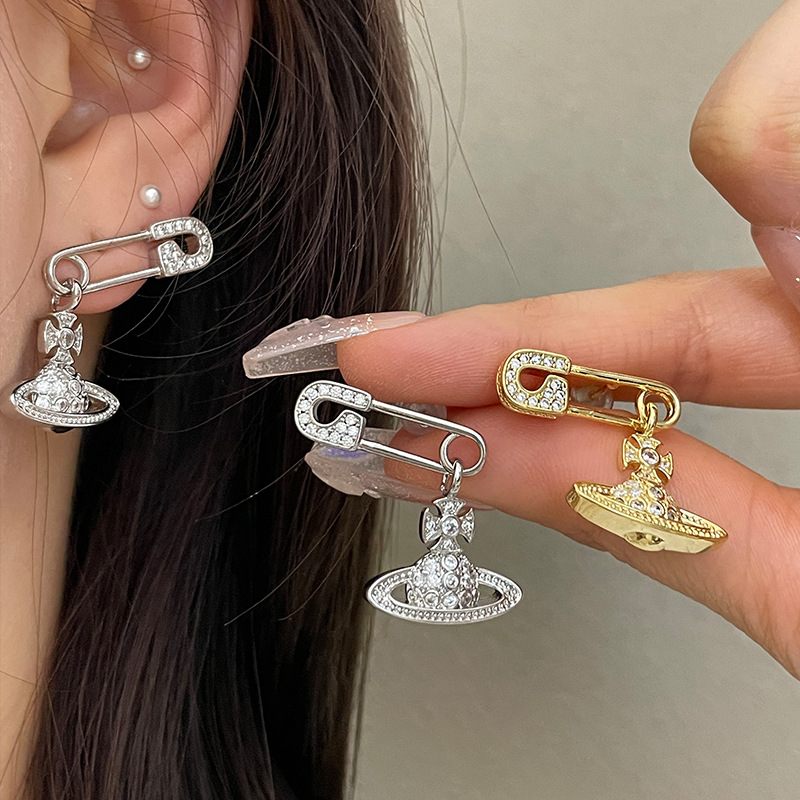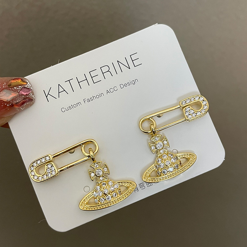 1614 zircon saturn pin gold stud earrings