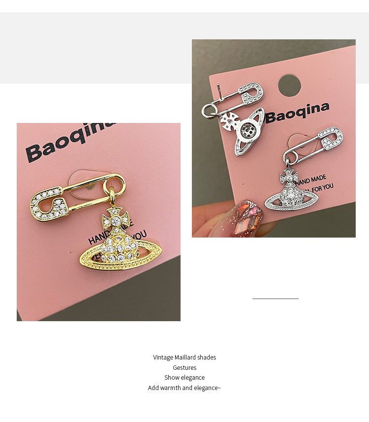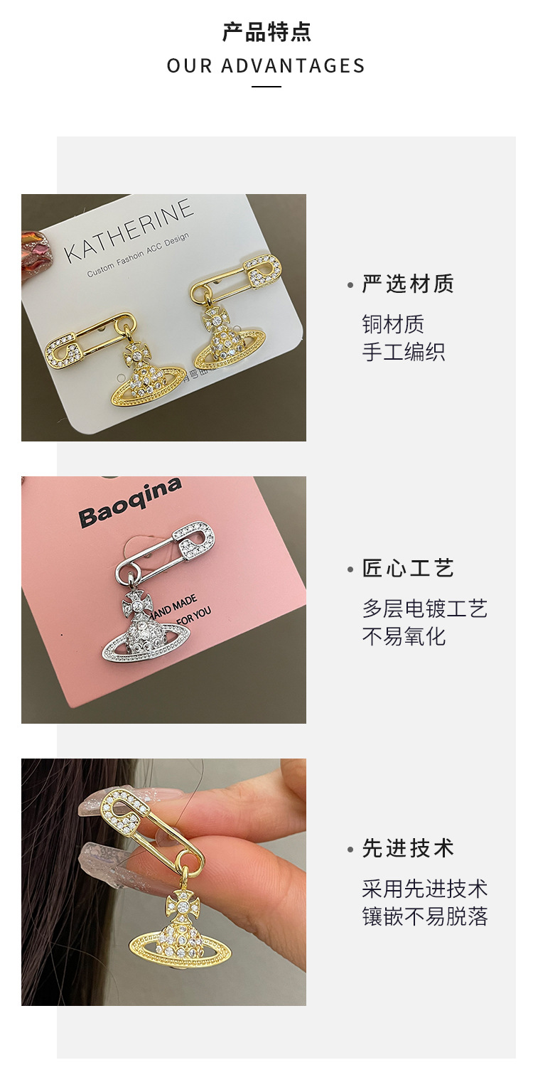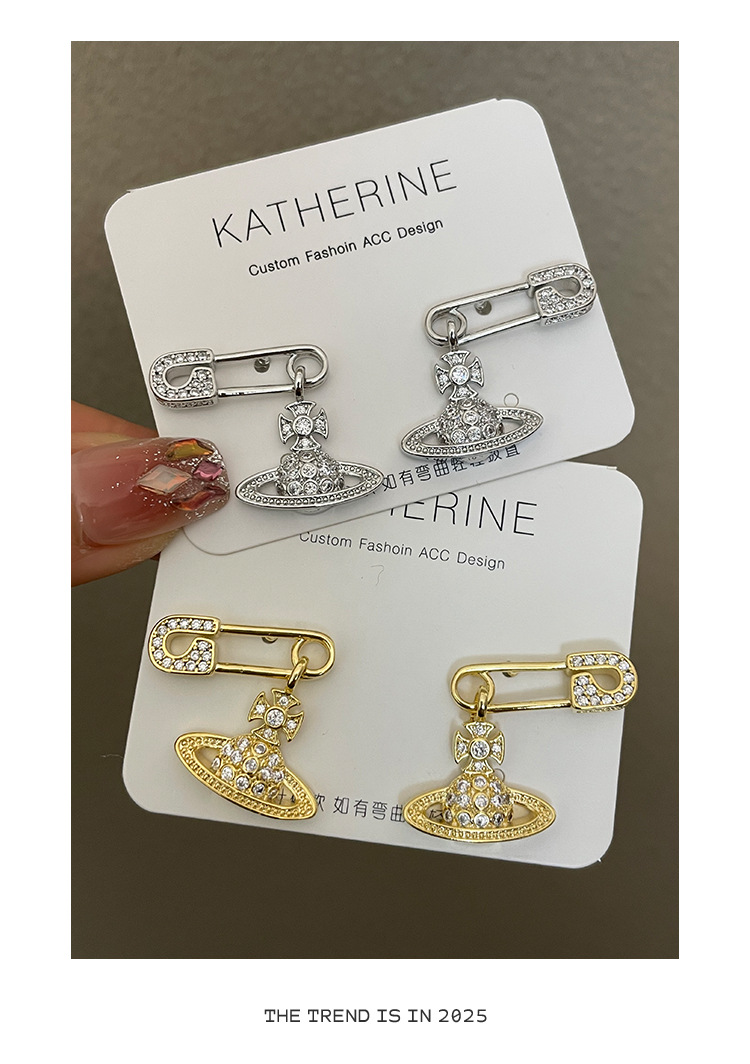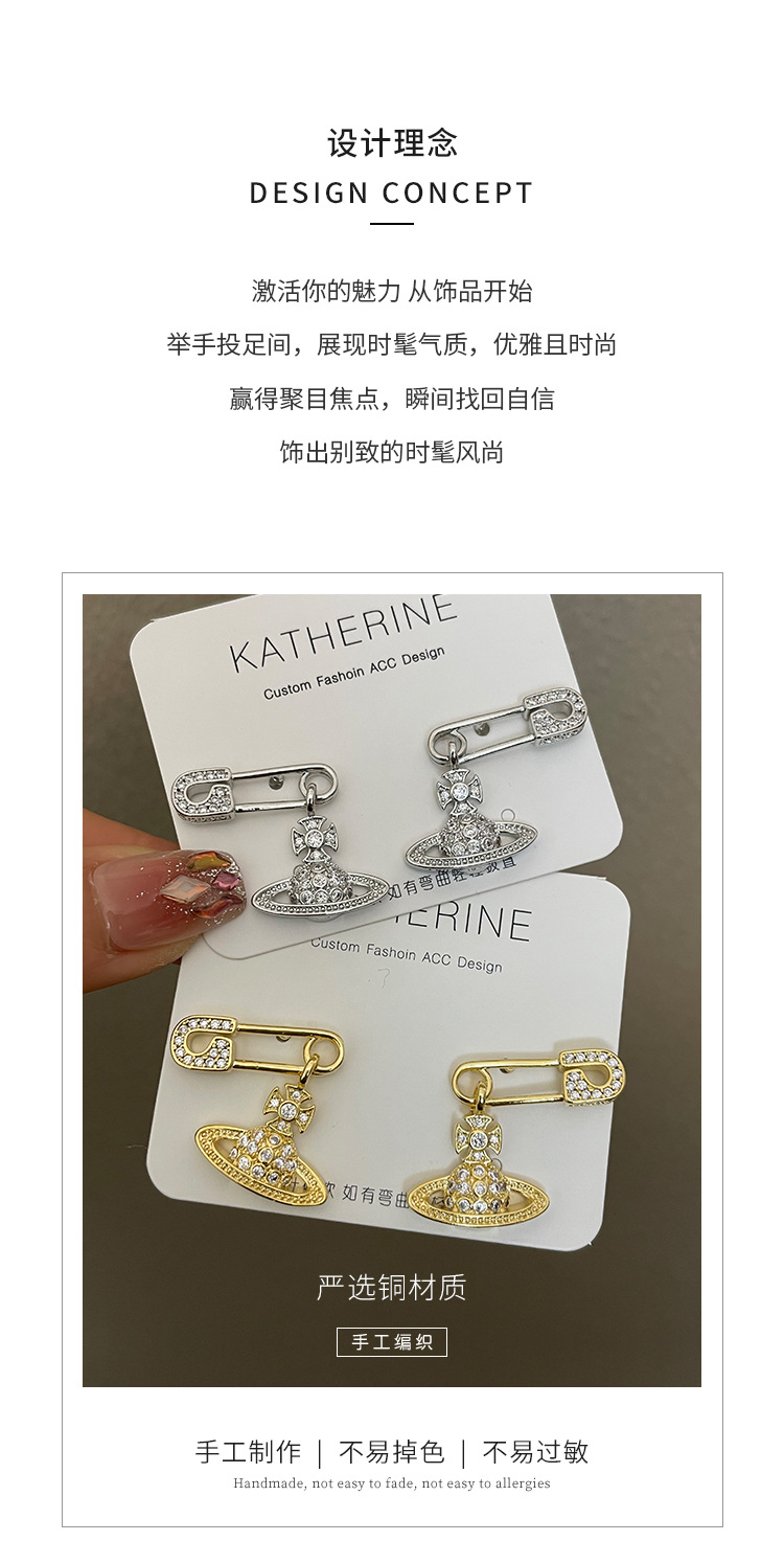 1614 zircon saturn pin gold stud earrings
