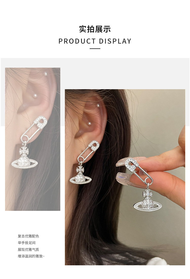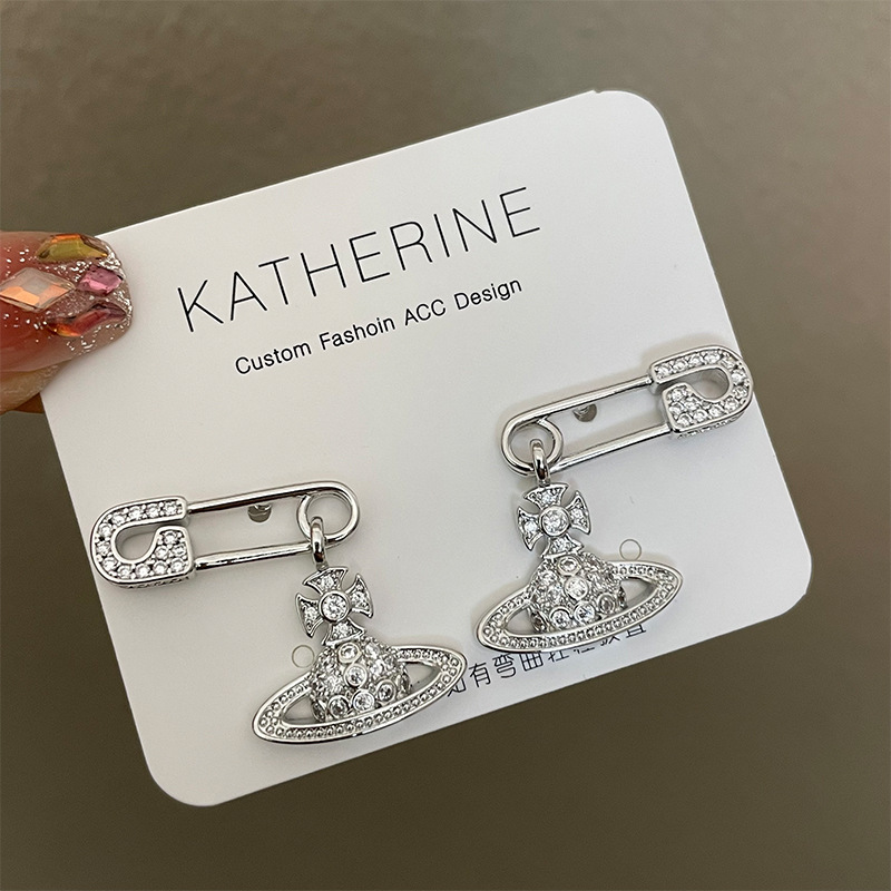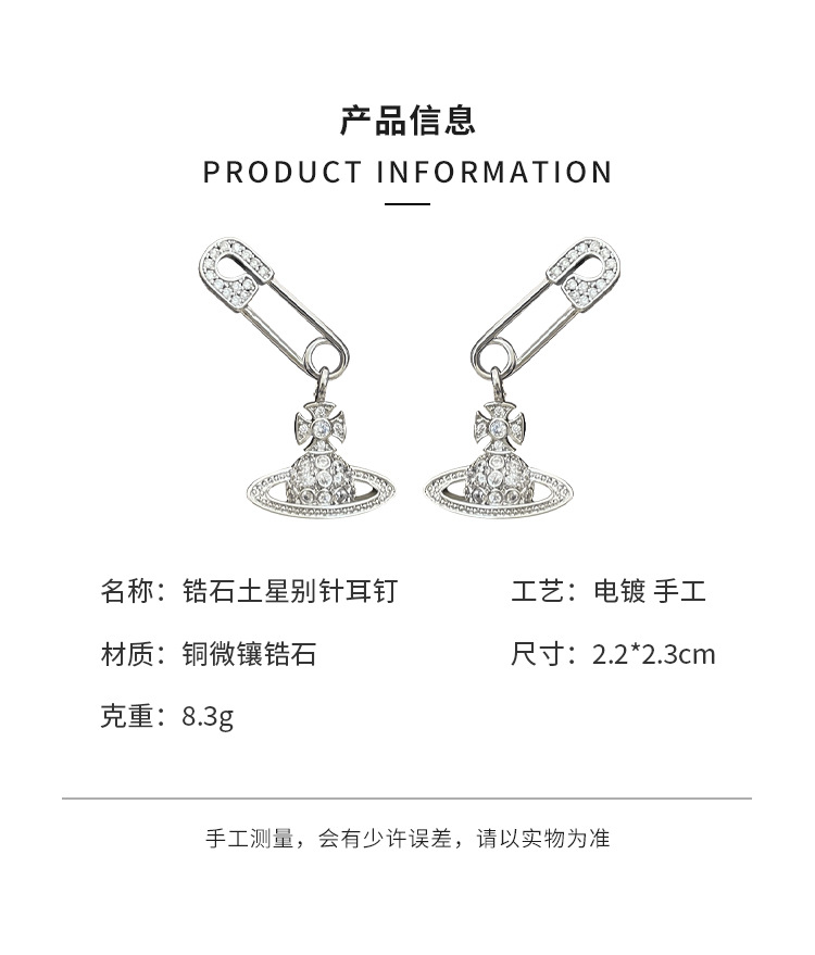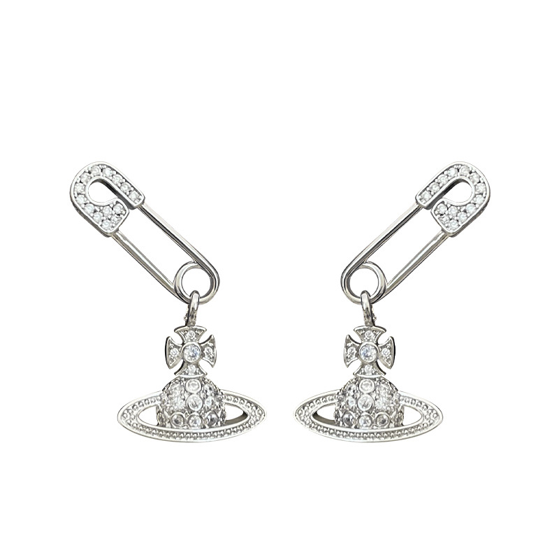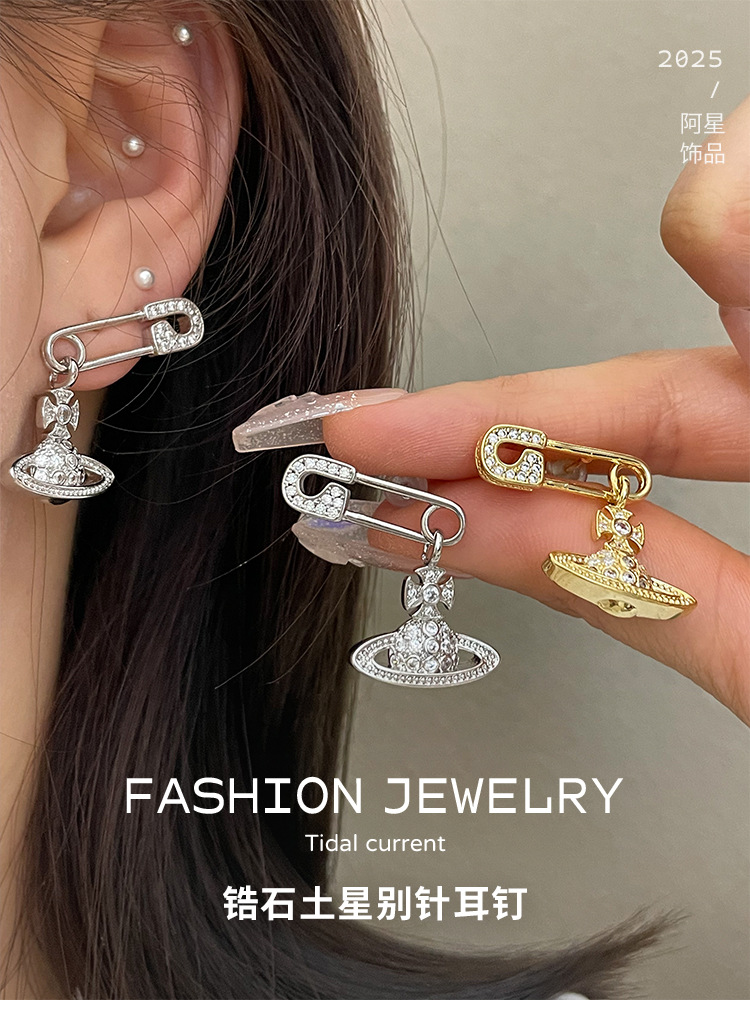 1614 zircon saturn pin silver stud earrings