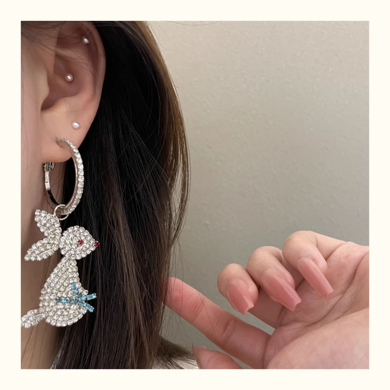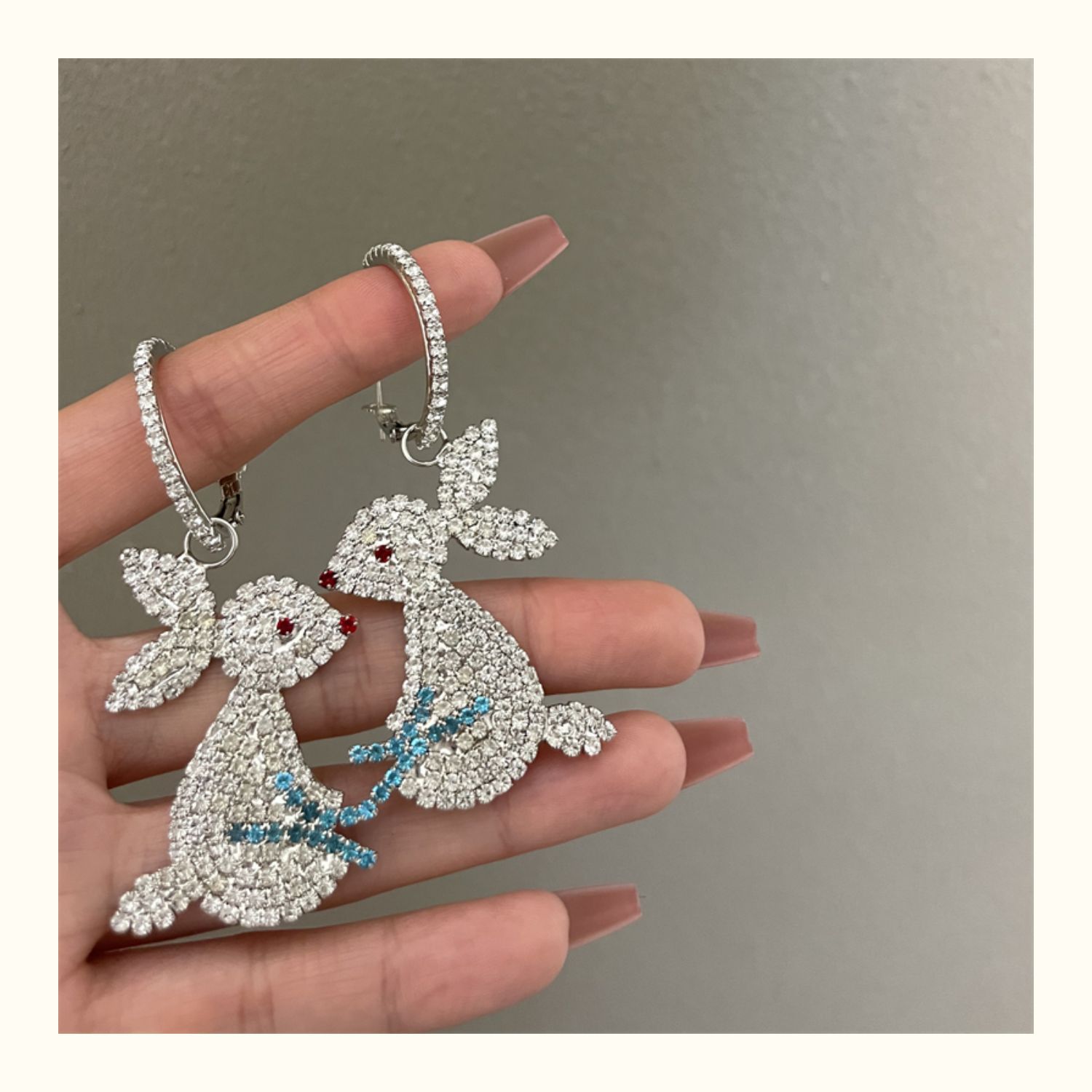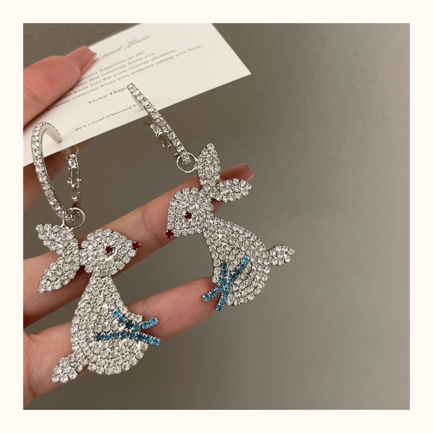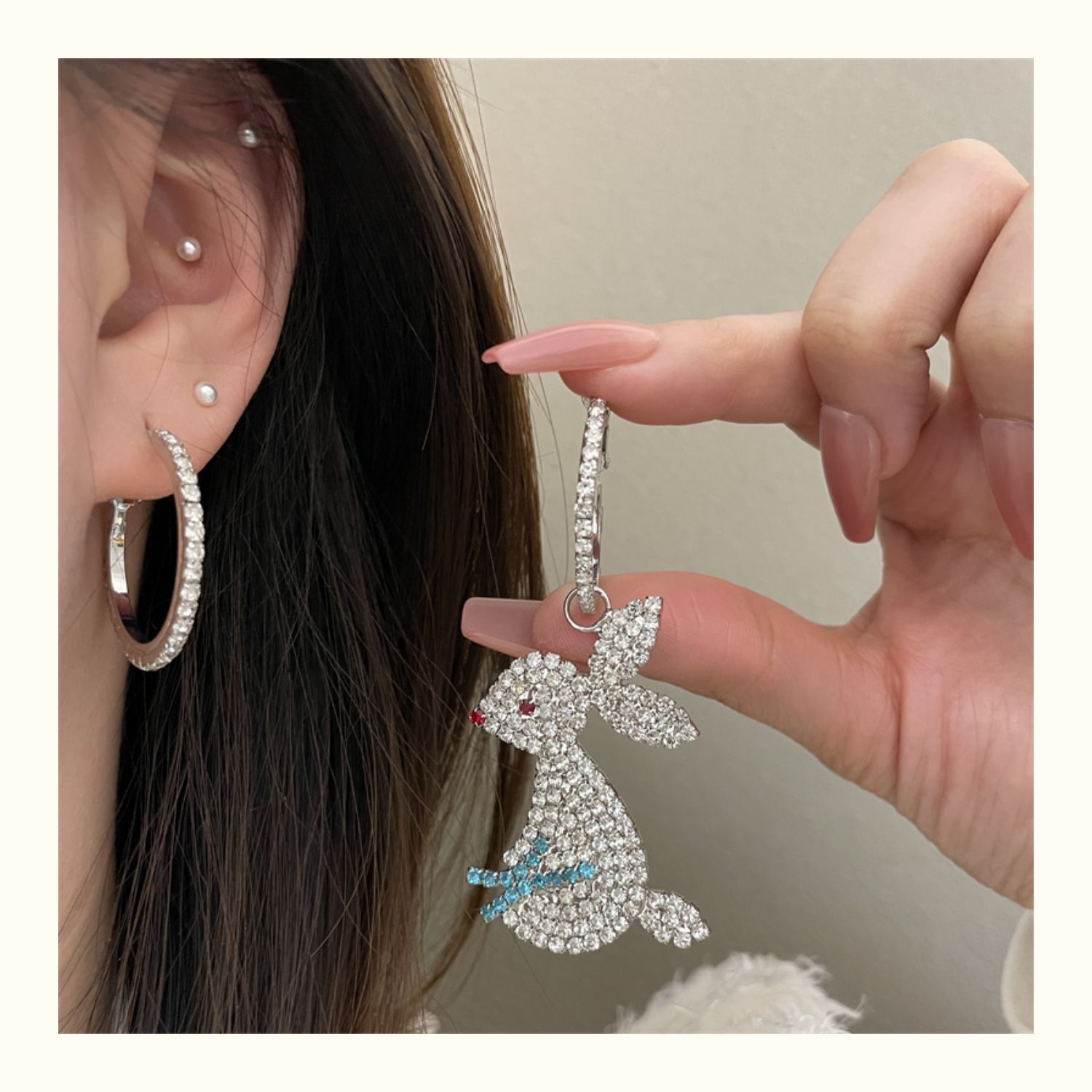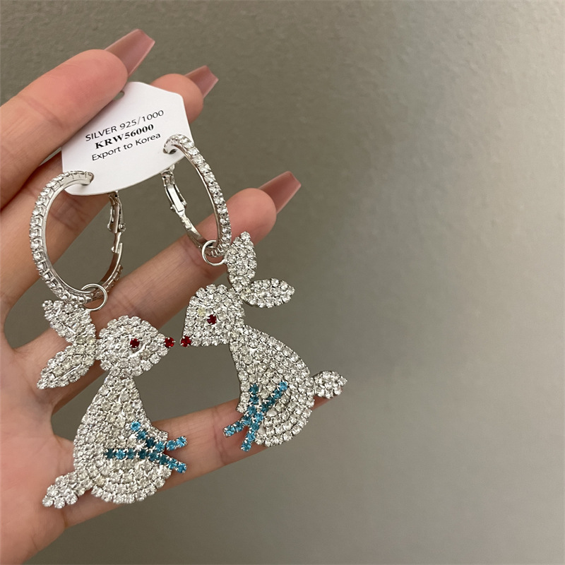 0635 silver rhinestone large rabbit earrings 925 silver needle