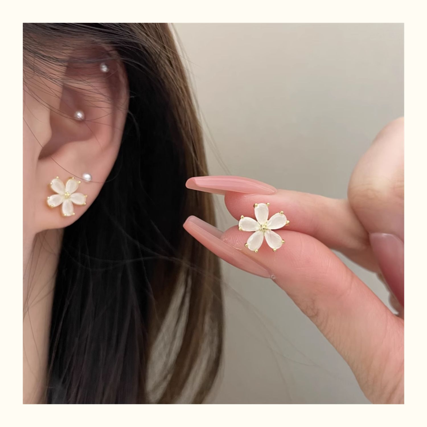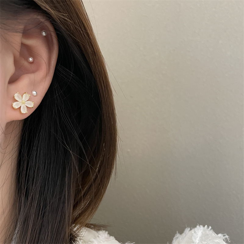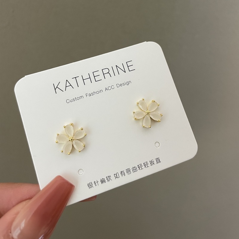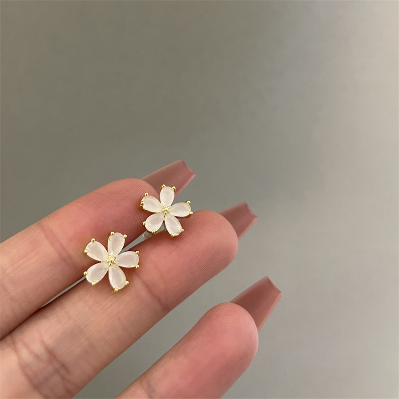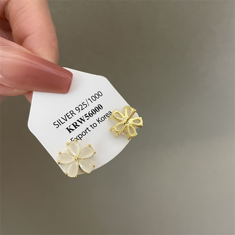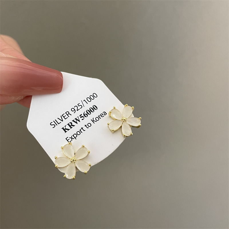 1361 ice feeling opal small flower ear studs 925 silver needle