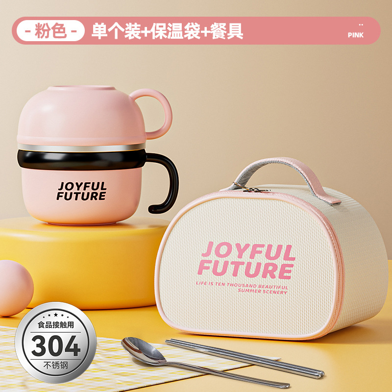 pink-meal cup + chopstick and spoon + bag