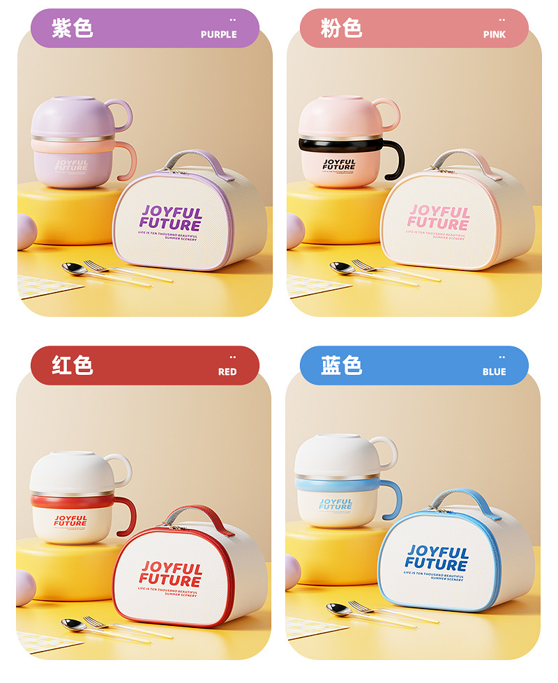 purple-meal cup + chopstick and spoon + bag