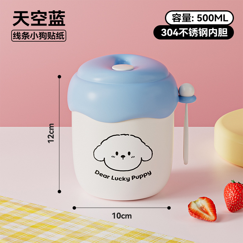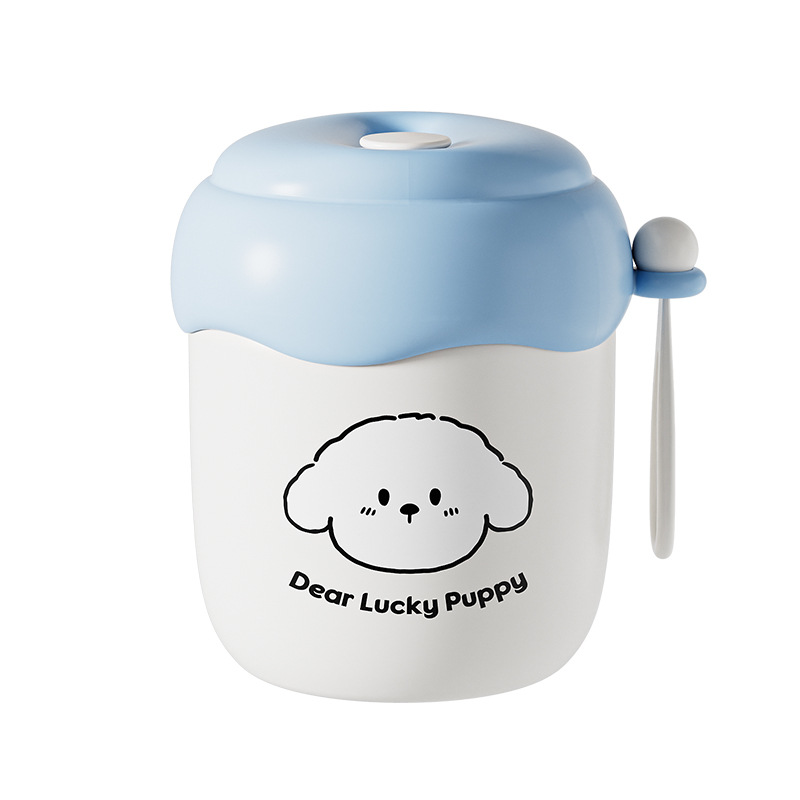 blue [with puppy stickers + spoon]]