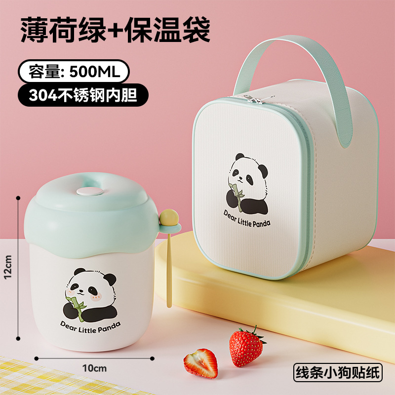 green [with panda sticker + spoon] + bag