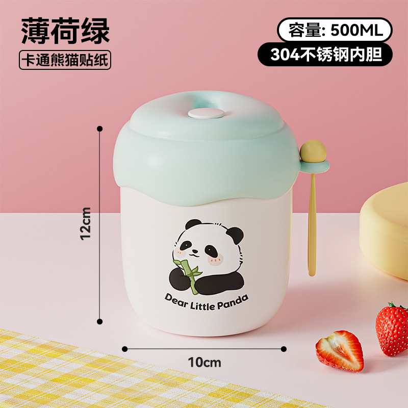 green [with panda stickers + spoon]]