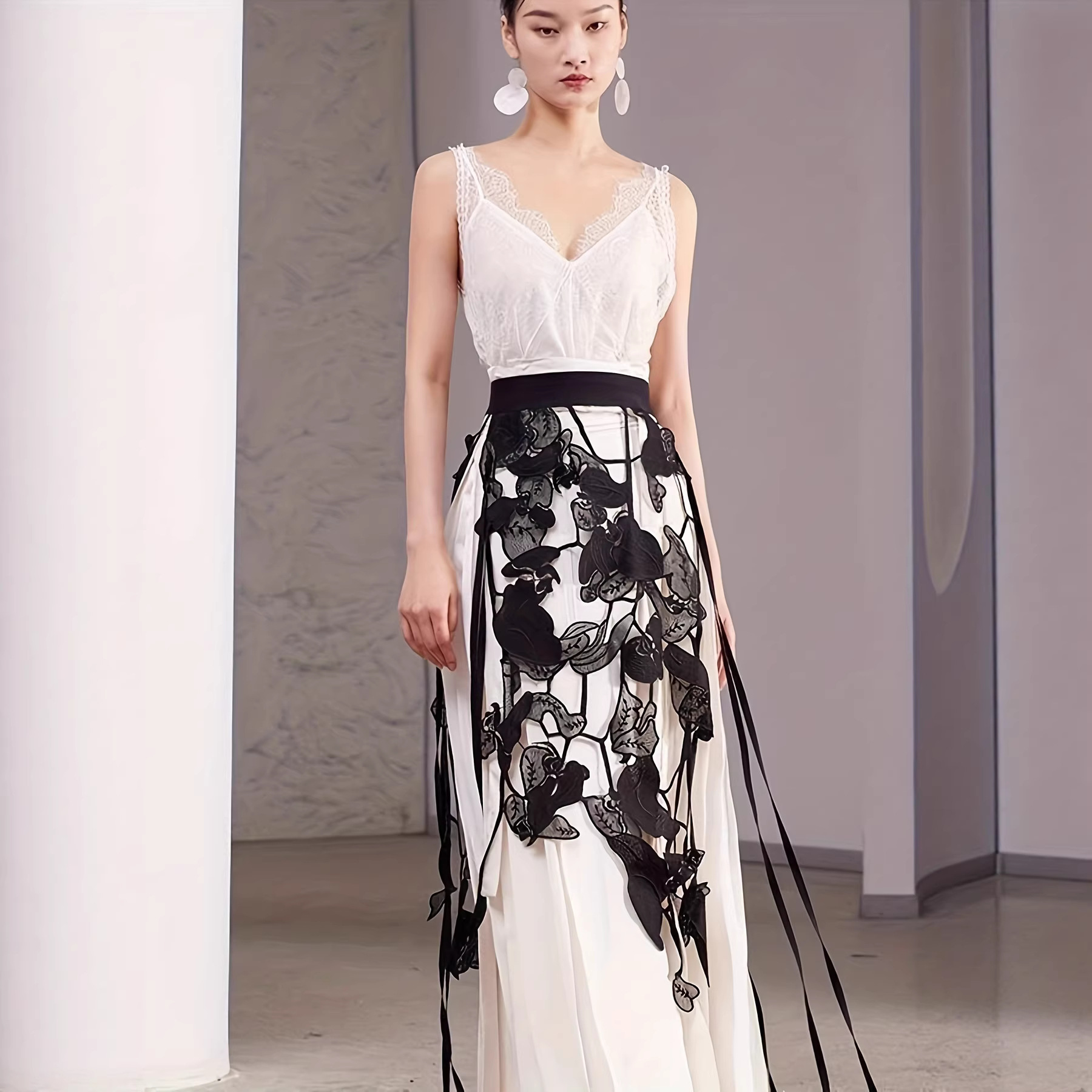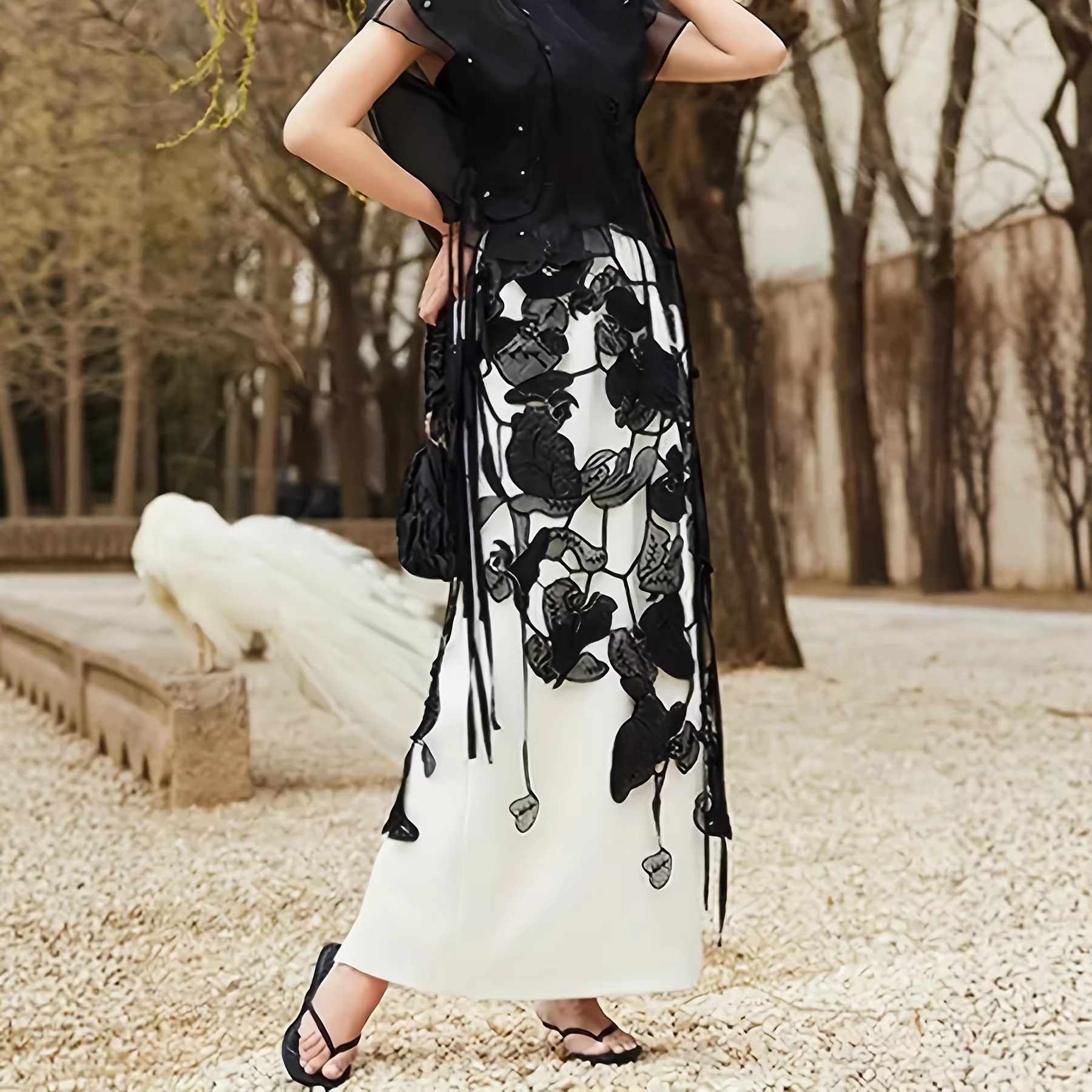 popular elements: solid color, embroidery, embroidery, elastic waist