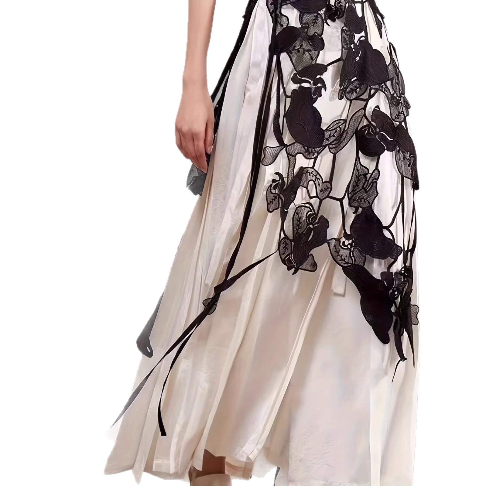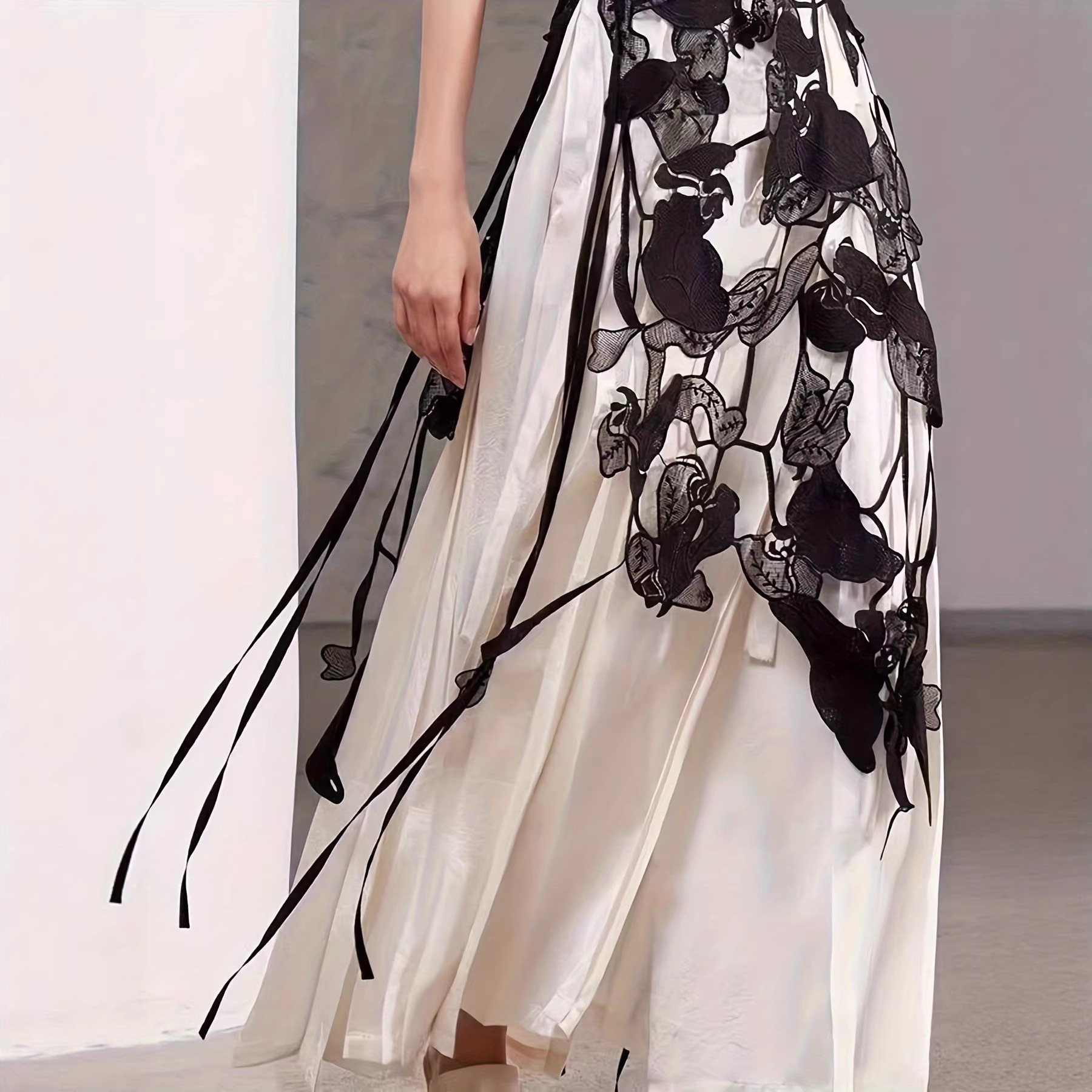 solid color, embroidery, embroidery, elastic waist