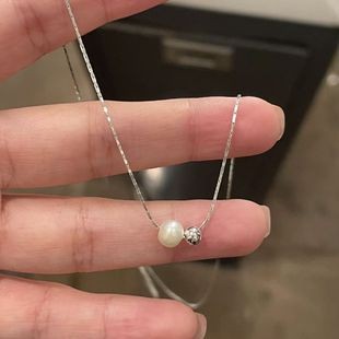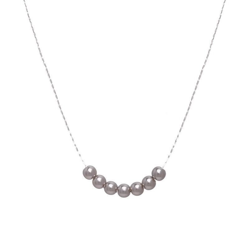 silver gray pearl silver chain necklace