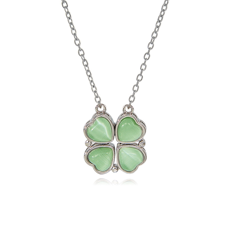 titanium steel necklace: magnetic green cat eye clover necklace