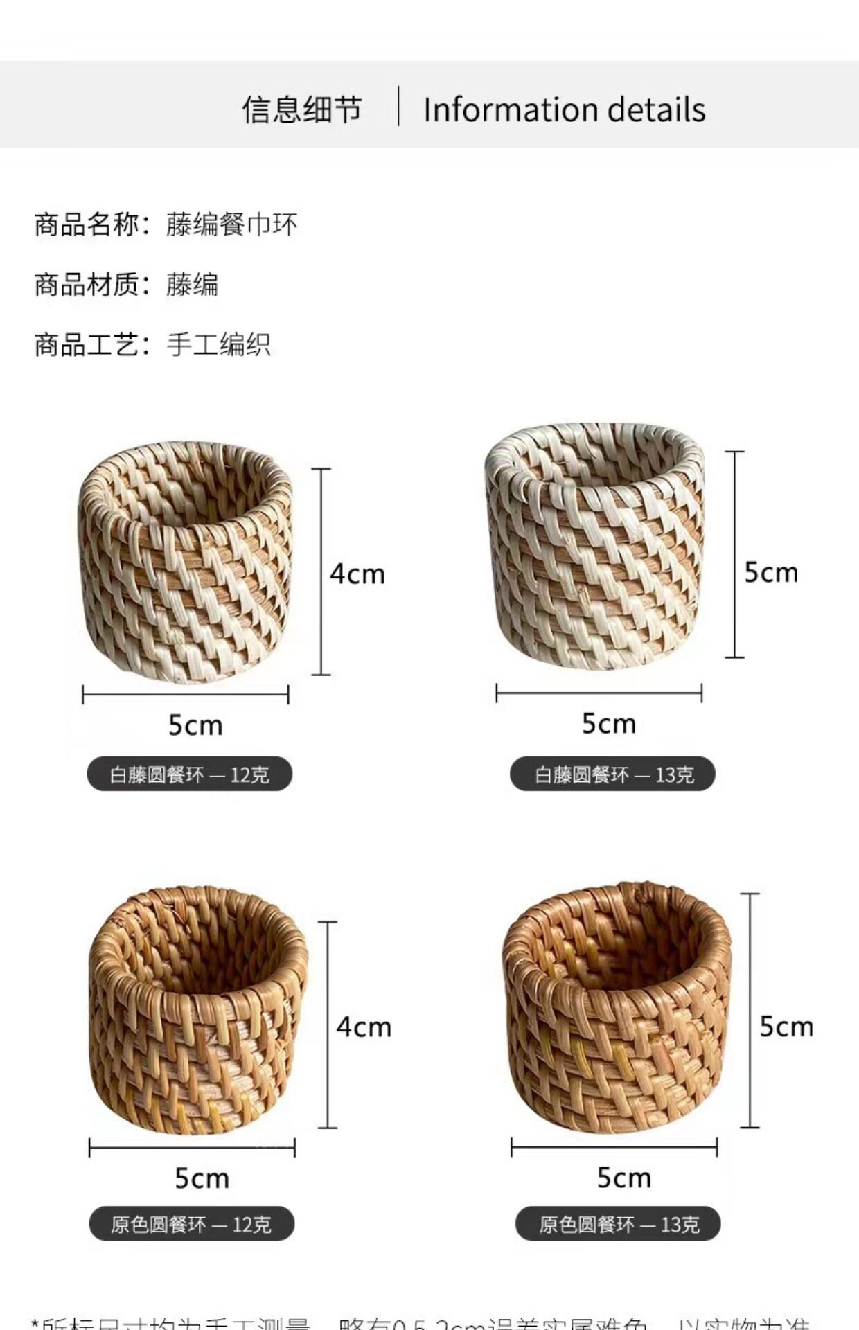 color classification: white vine small ring, white vine large ring, primary color rattan small size, primary color