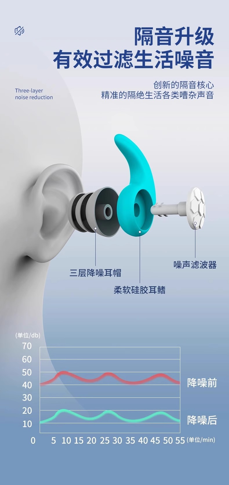 soundproof earplugs-blue-size l-1 boxed