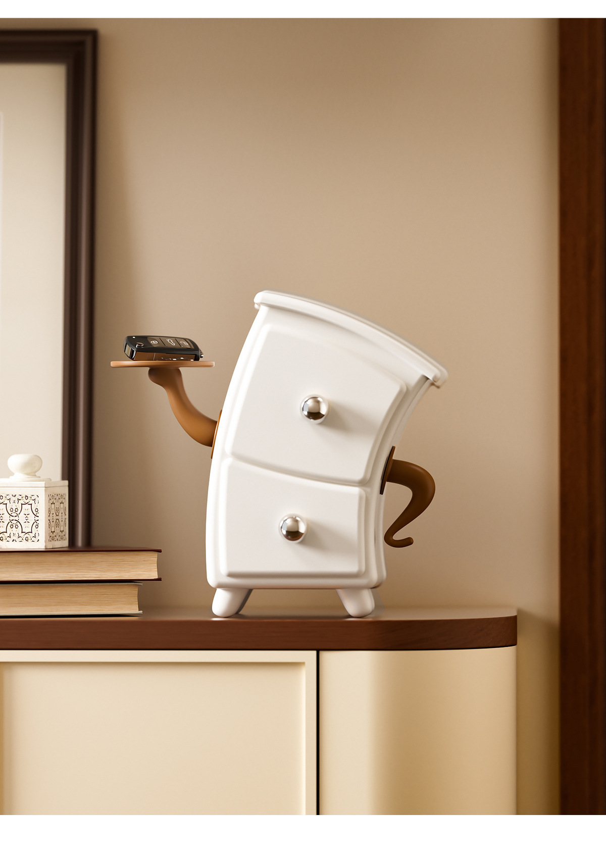 white sideboard with open shelves
