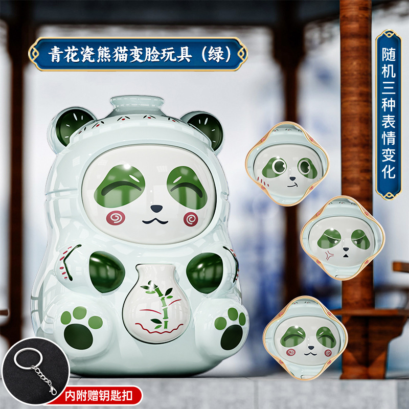 [exquisite gift box] blue and white porcelain face changing [green】 variable 3 face