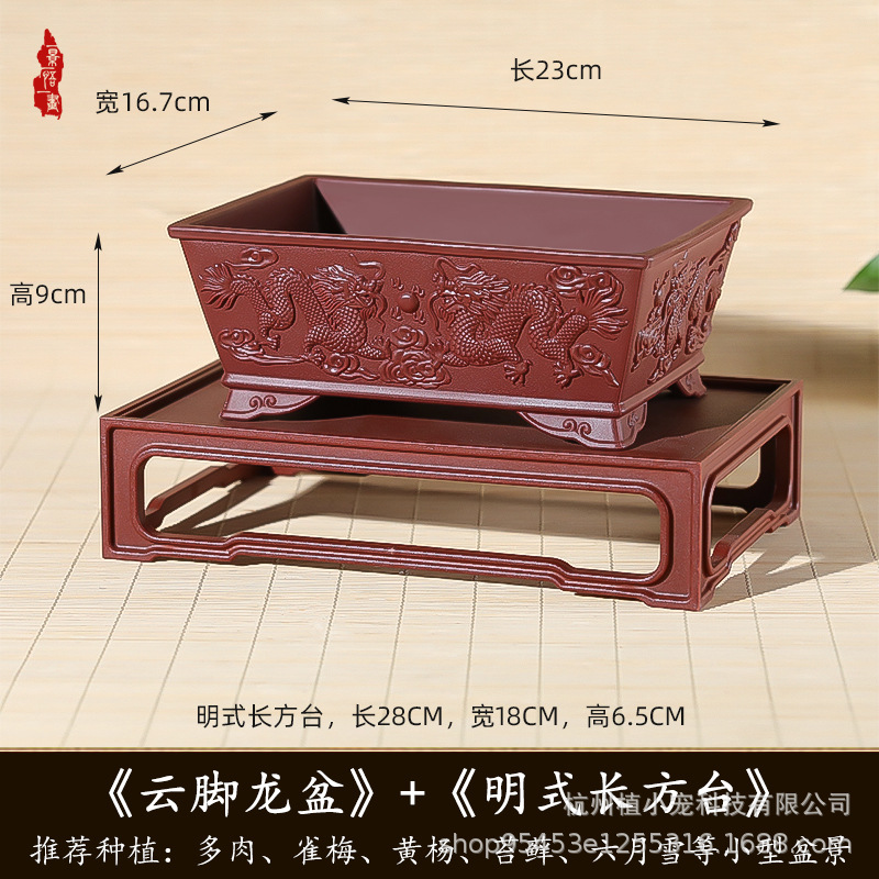 dark reddish purple [with ming-style rectangular table] length 23cm width 16.7cm height 9cm
