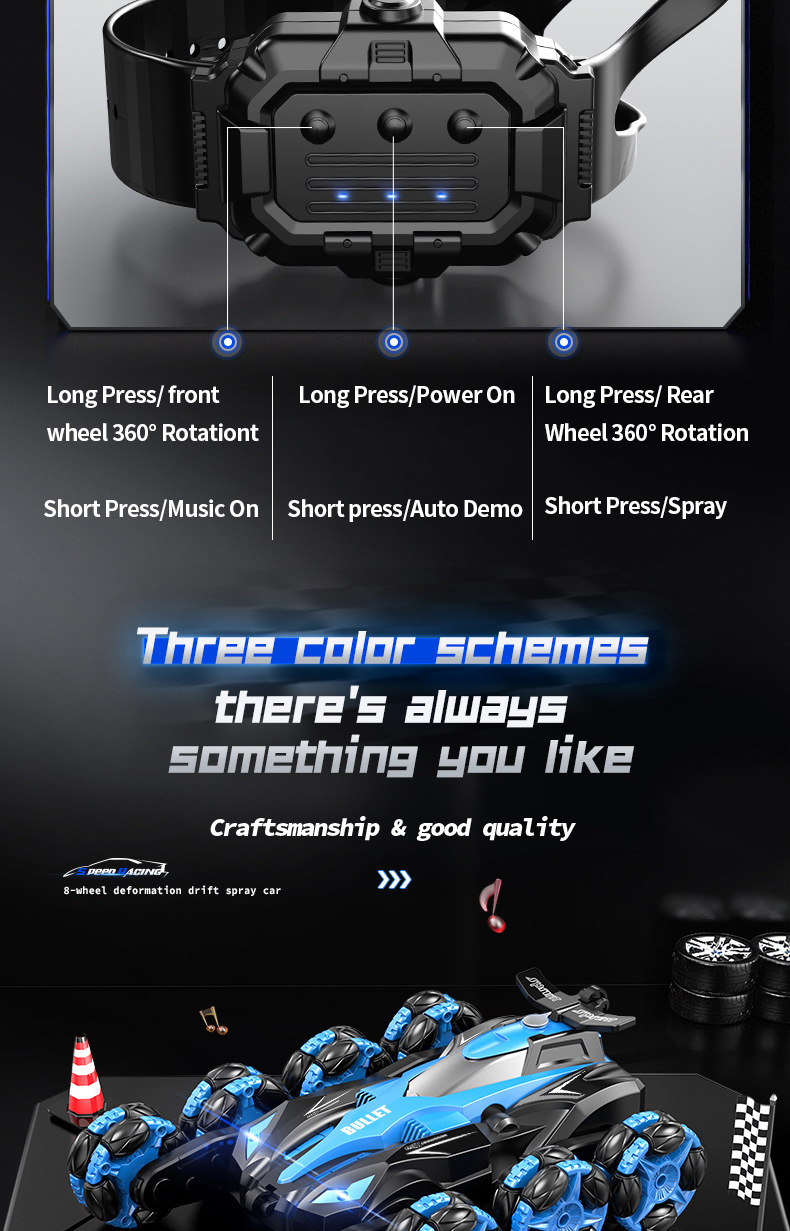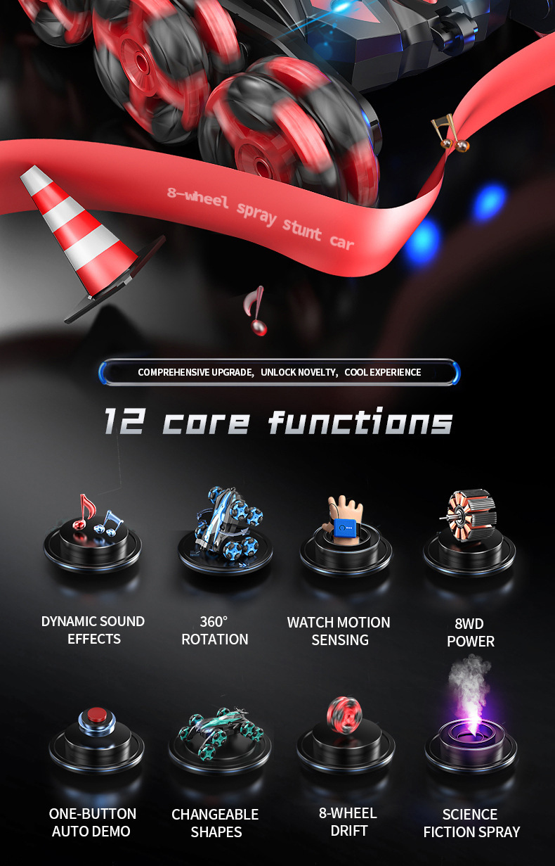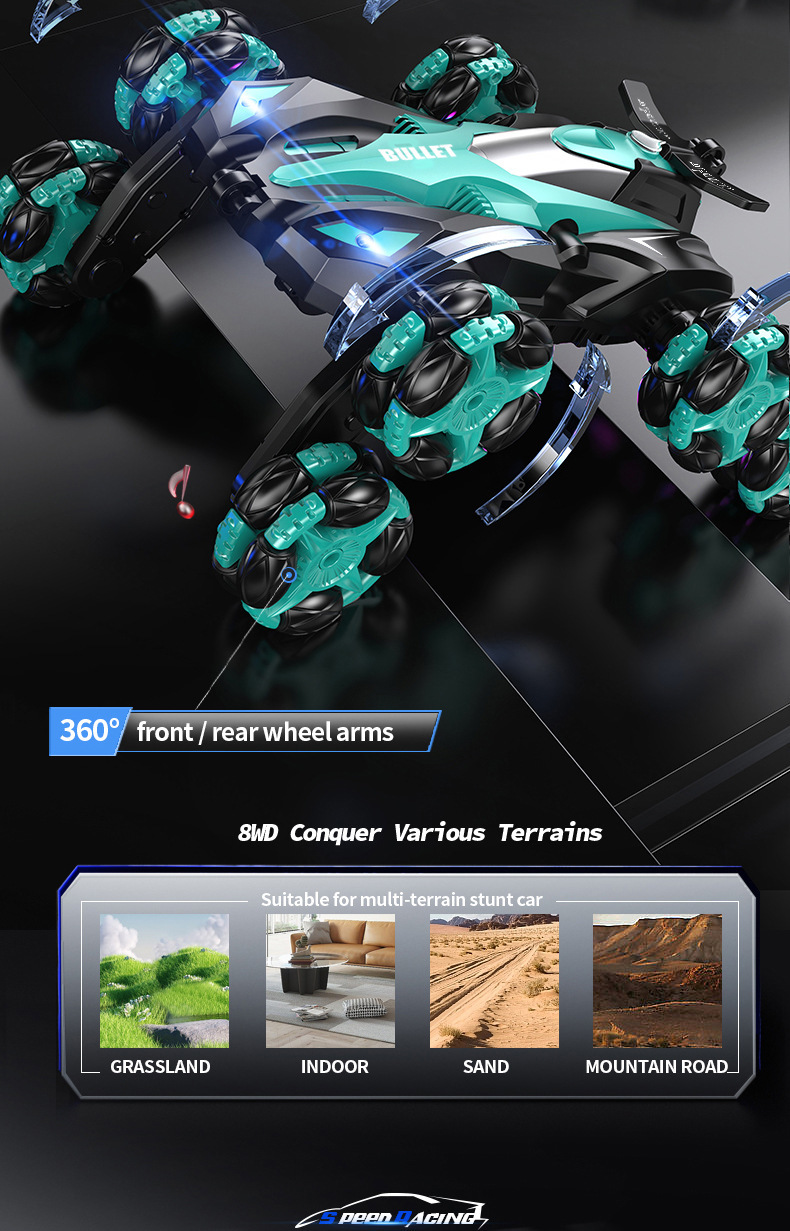 Eight-wheel stunt car