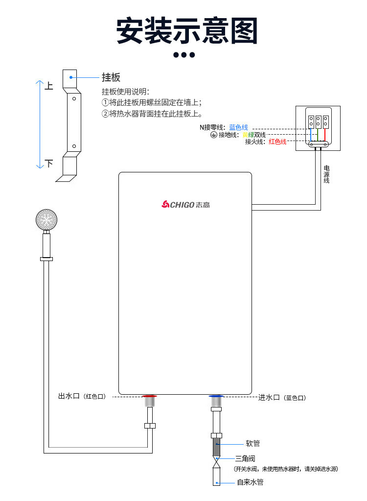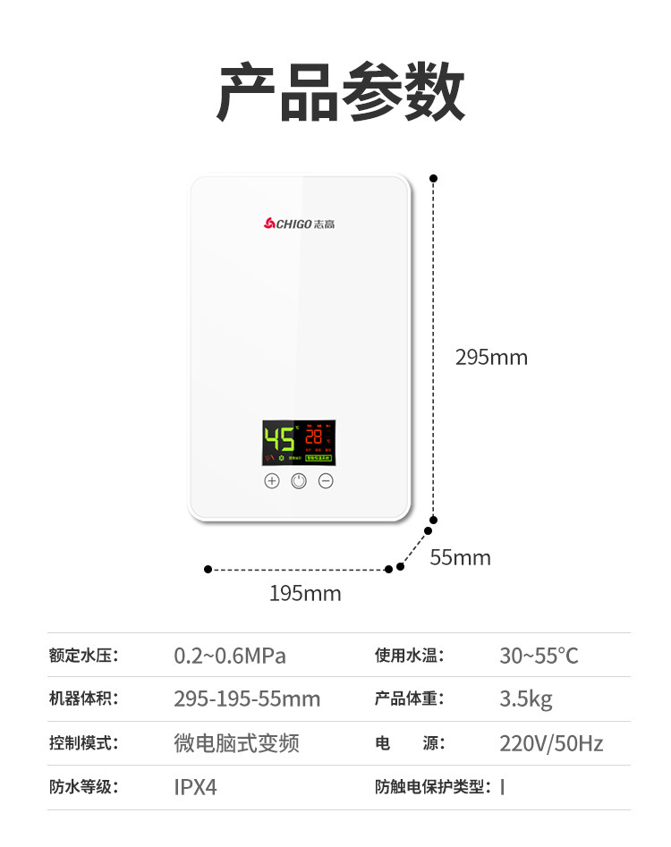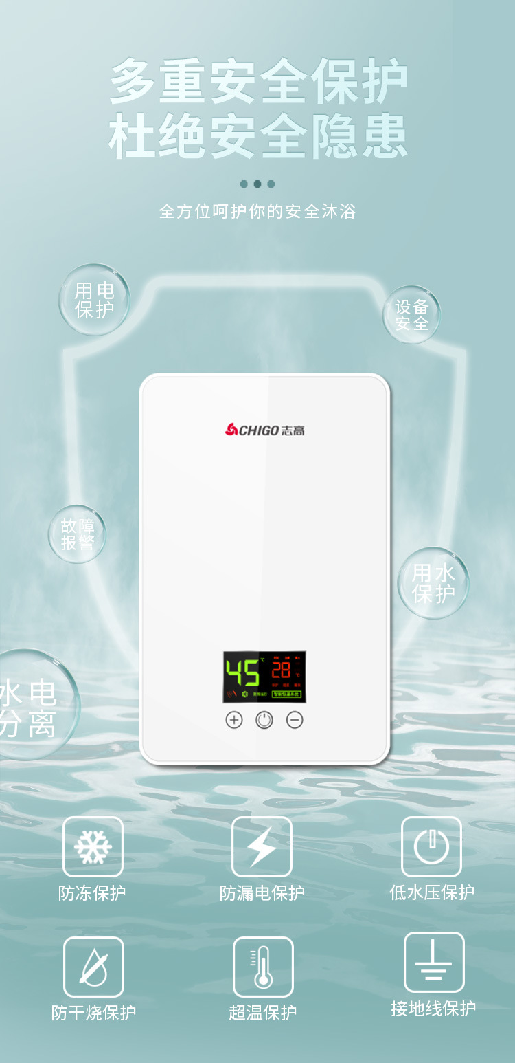 zg-kb515 5500w shower model with accessories full set + leakage protection plug