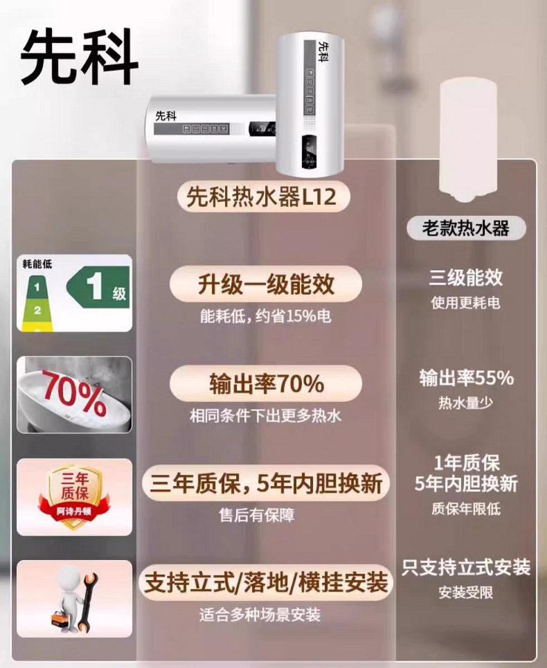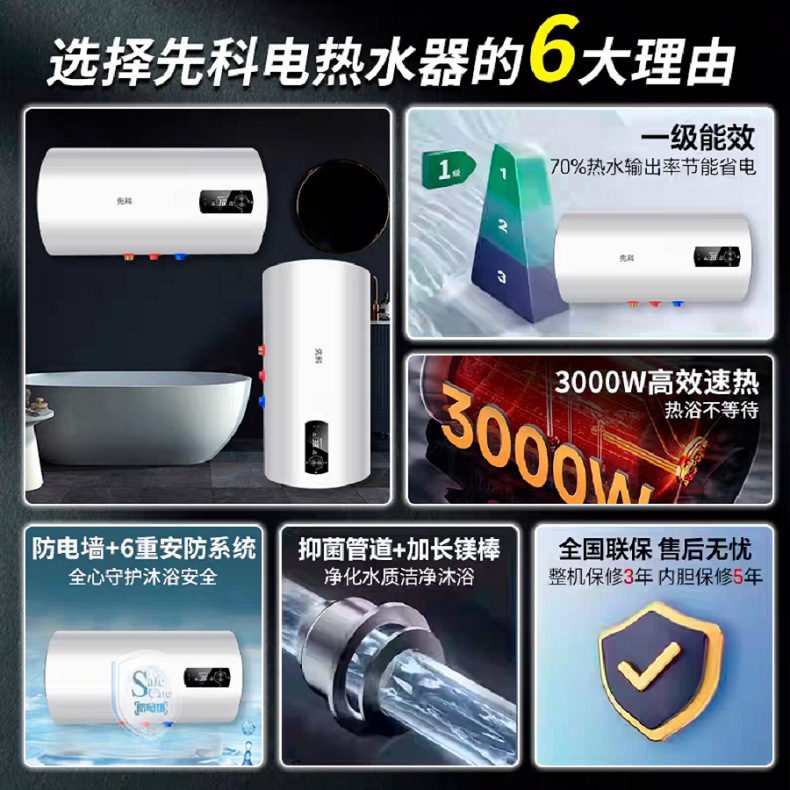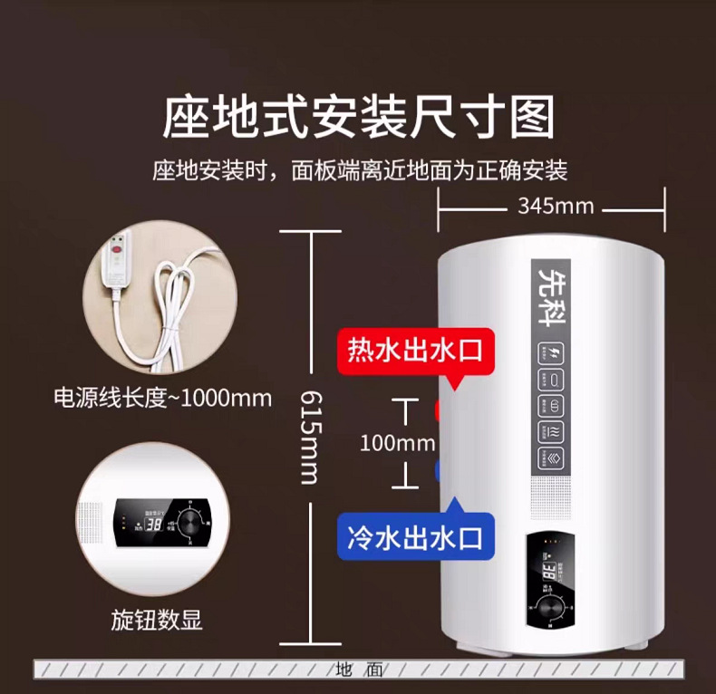 electric water heater 3000w quick heating grade i energy efficiency can be across can be vertical hanging can be installed on the ground engineering foreign trade export