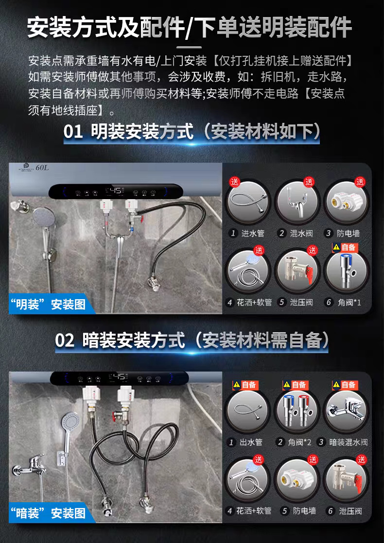 | 60l + dual anti-power wall + luxury accessories + home installation | CN¥ 666.9 |