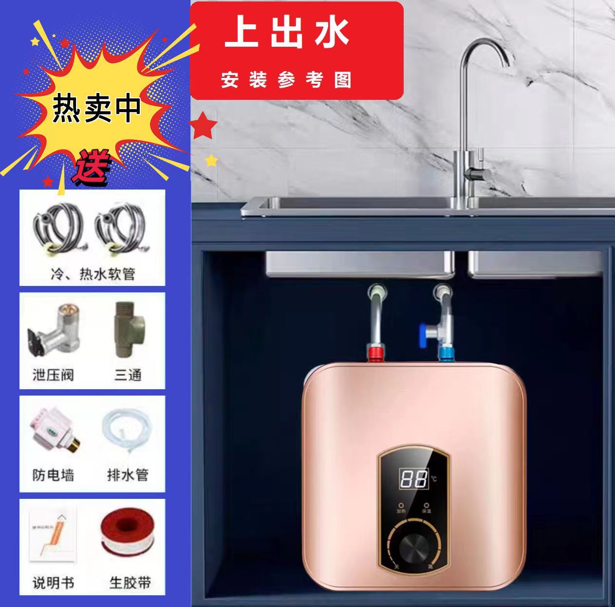 miniture water heater small water heater household kitchen mini electric water heater foreign trade export european standard british standard american standard 110v