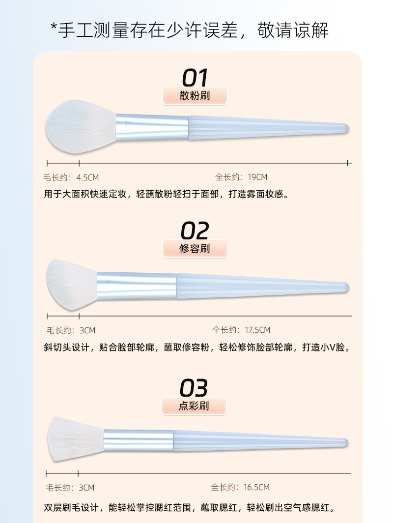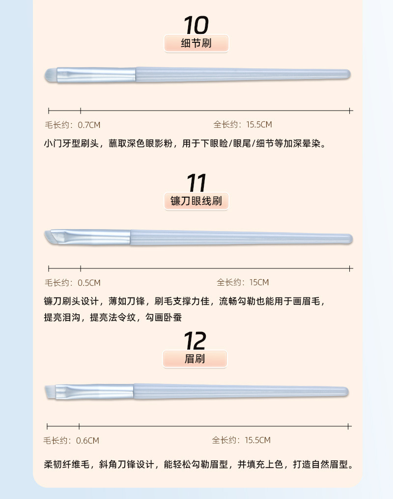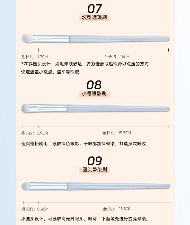 product category: cosmetic bag, makeup brush, makeup brush set, eyeliner brush, concealer brush