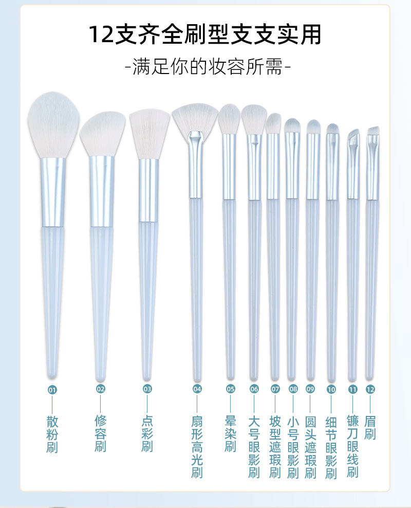 specifications: 12 ziling makeup brushes-naked brush, 12 sky blue makeup