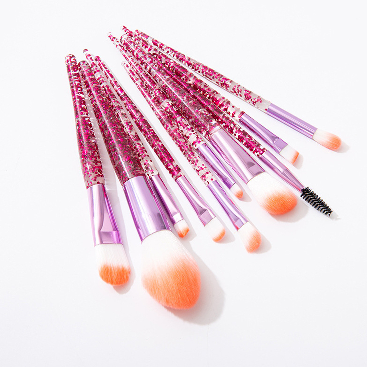 red paillette makeup brush (orange hair), red paillette makeup brush