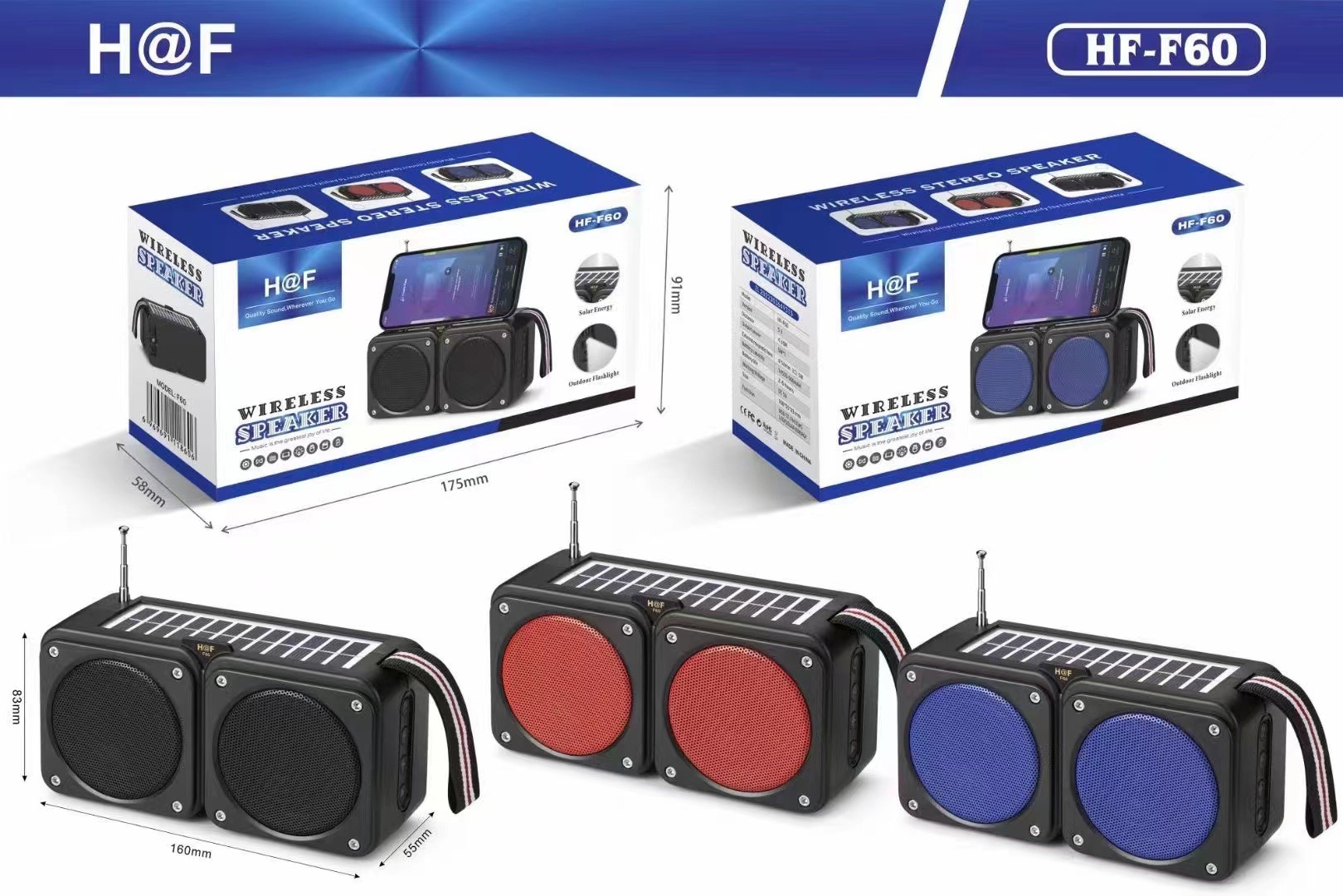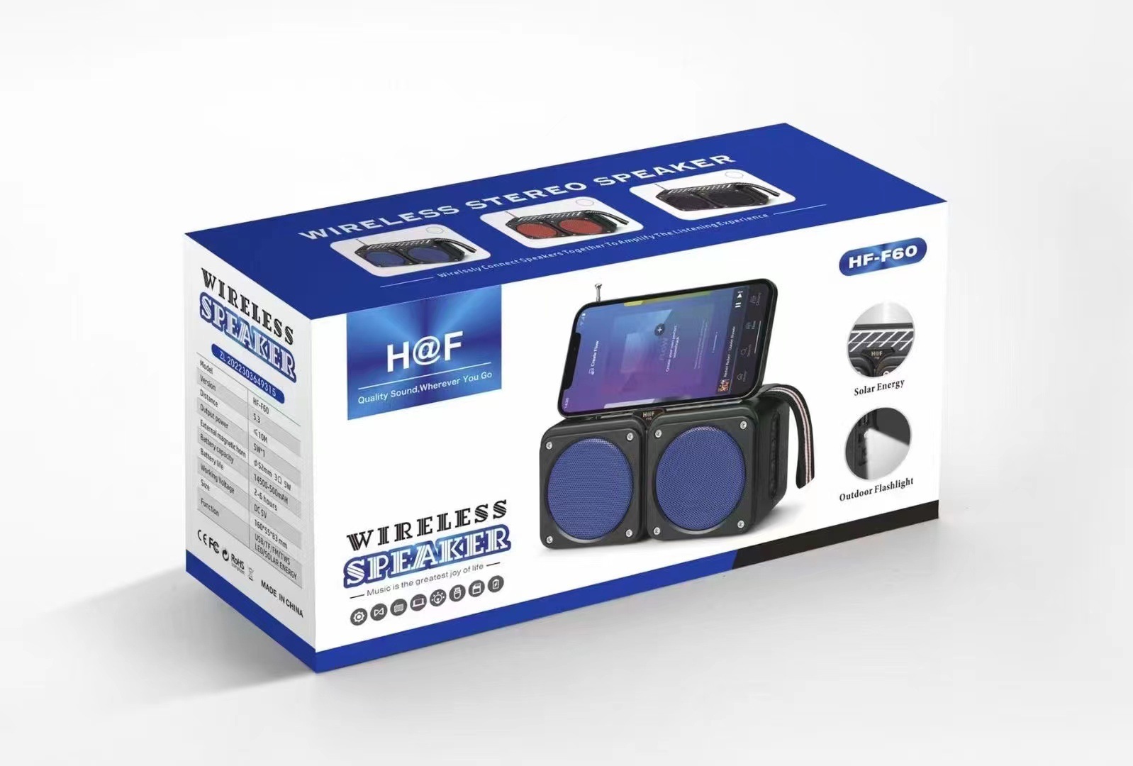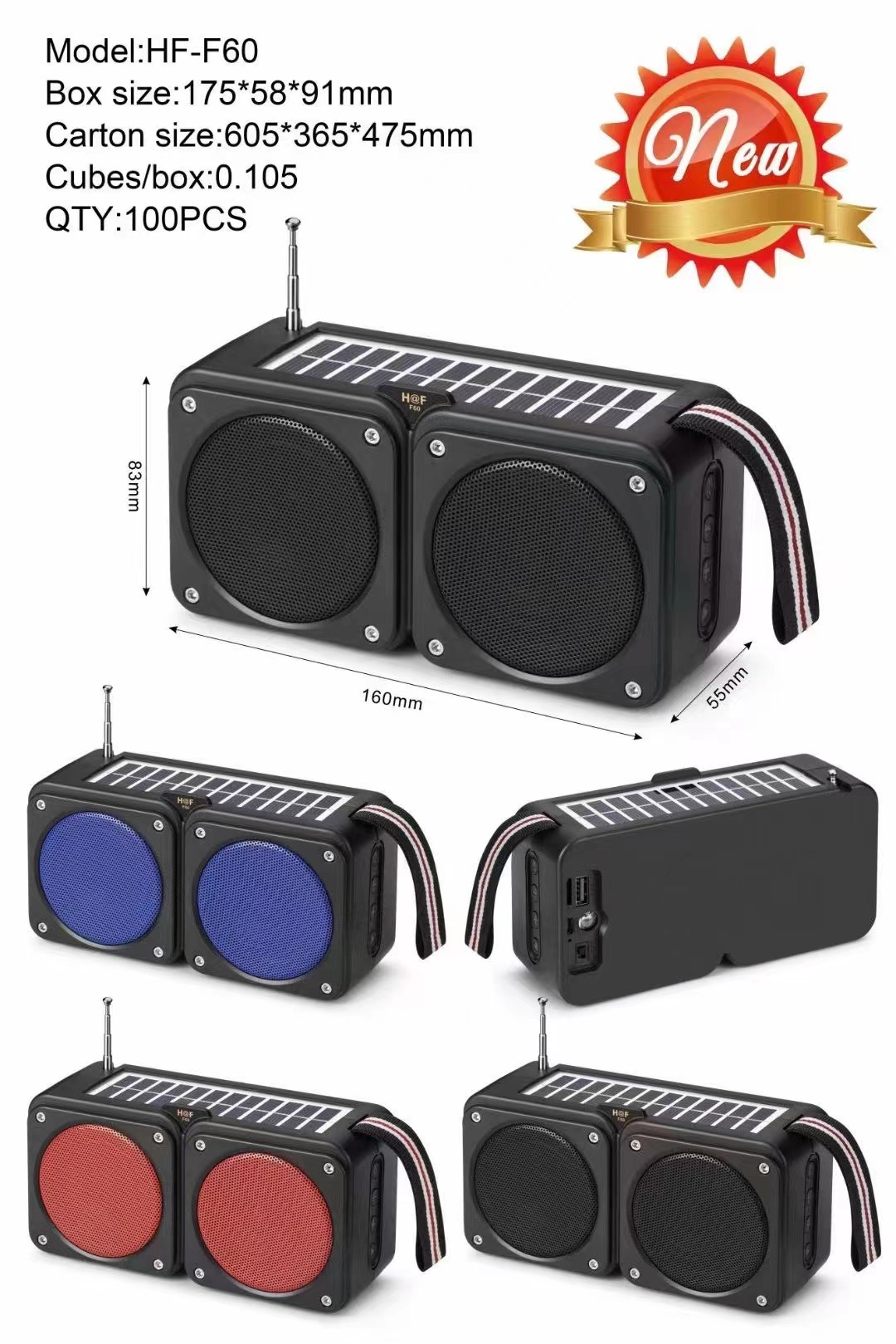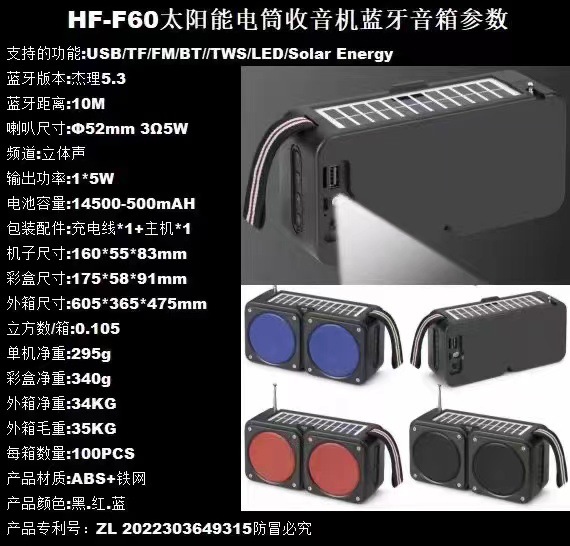 hf-f60 bluetooth speaker mini card outdoor solar panel charging antenna radio emergency torch square
