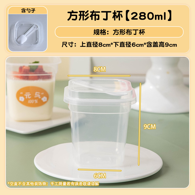 thin square-shaped pudding cup [280ml] 10 pcs with spoon