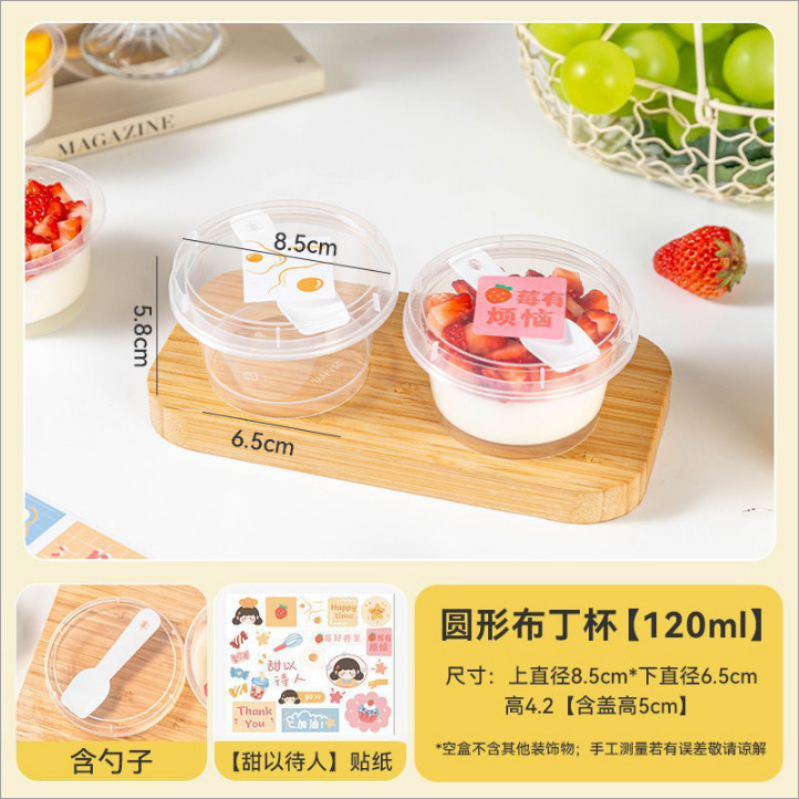 round pudding cup [120ml] 10 pcs with spoon + [colorful english] sticker 1 pc