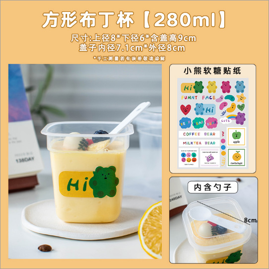 [square 280ml] pudding cup with free spoon +10 "sweet to people" stickers