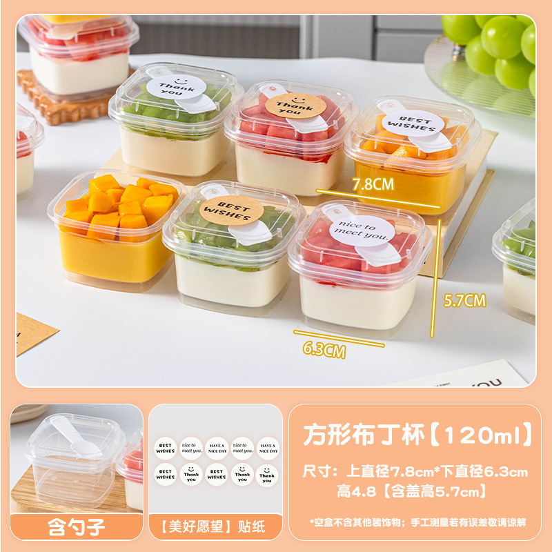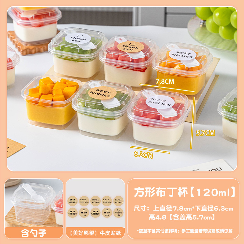 square pudding cup [120ml] 10 pcs with spoon + [good wishes] kraft sticker 1 pc