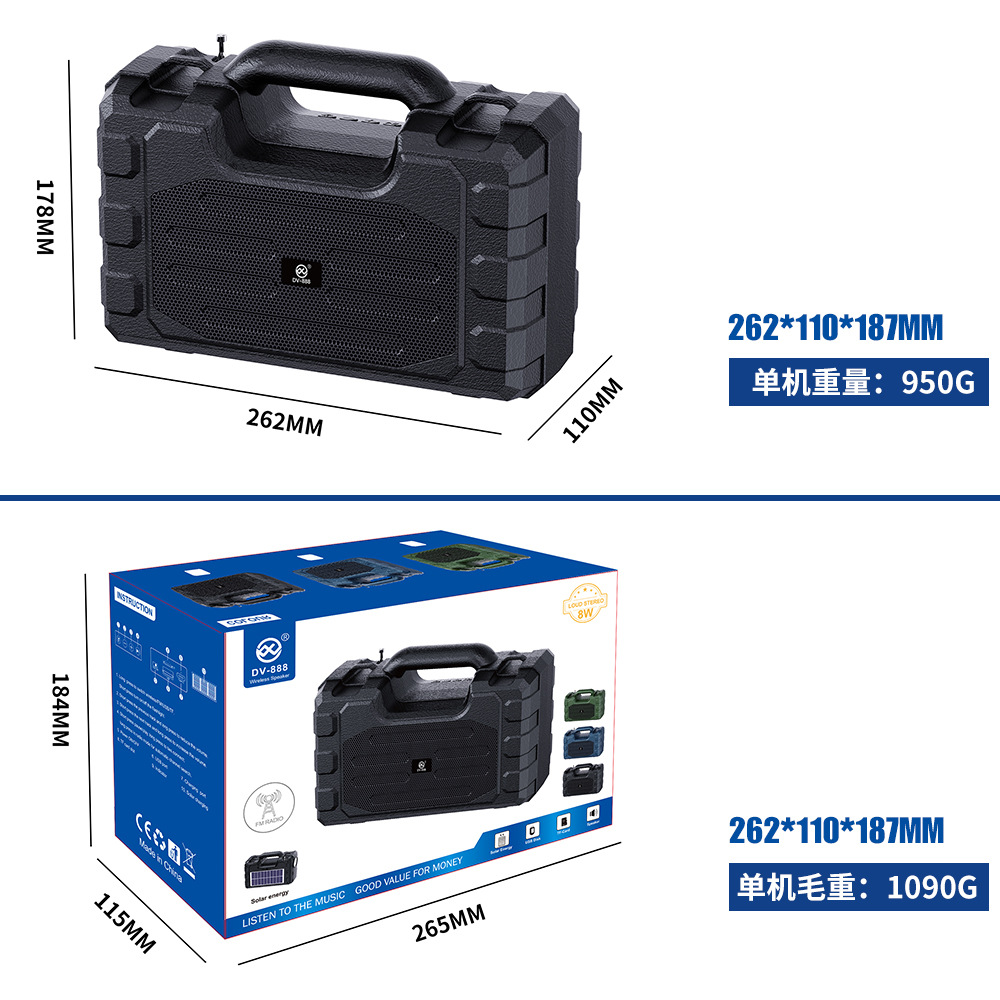 主要功能:5.3蓝牙+收音机+U盘播放+TF卡播放+太阳能+手电筒