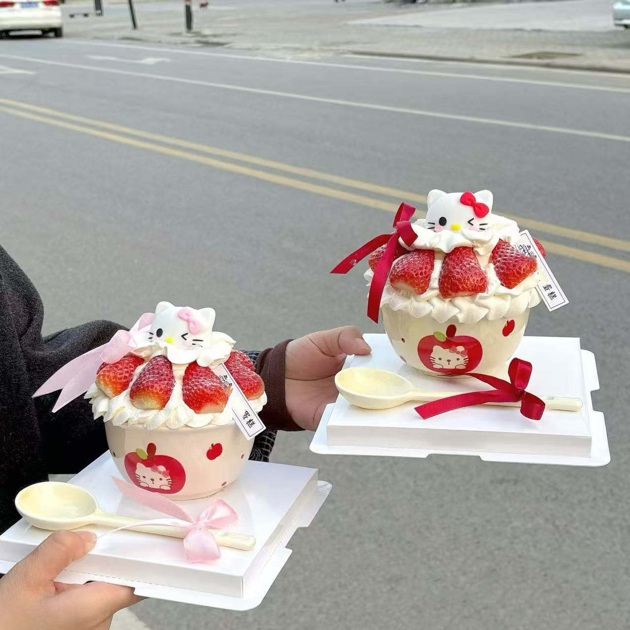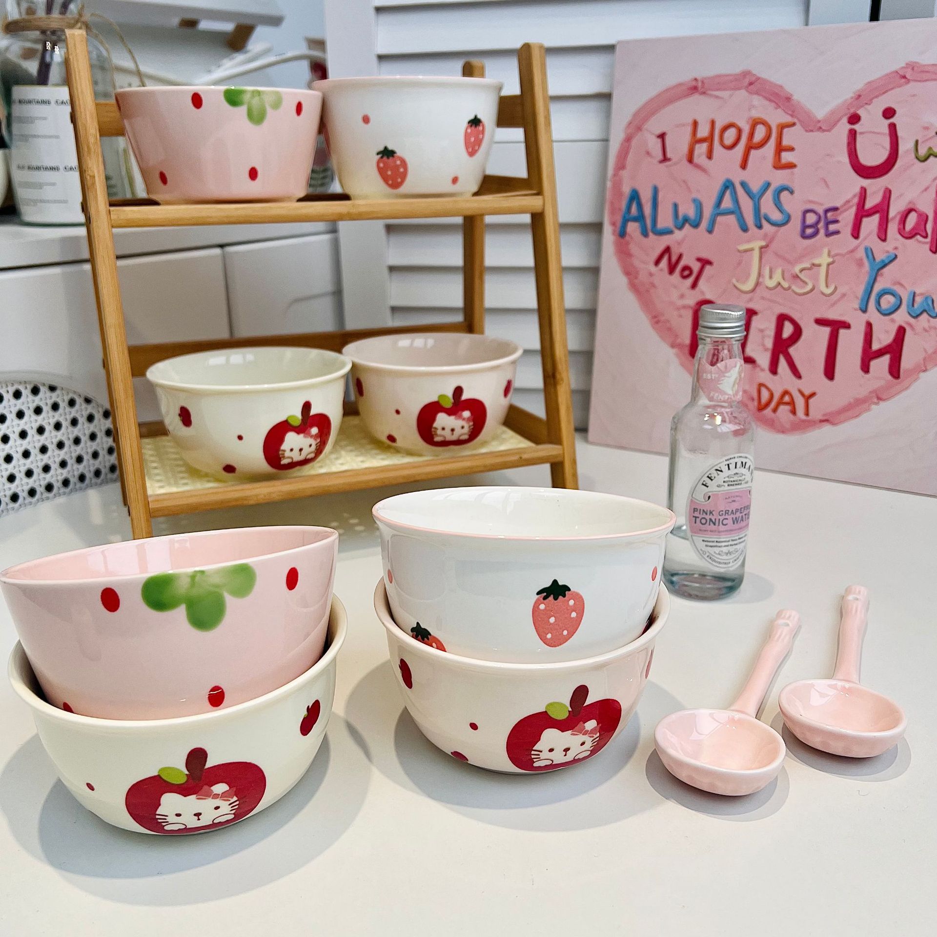 apple kitten 4.5-inch rice bowl-girl pink
