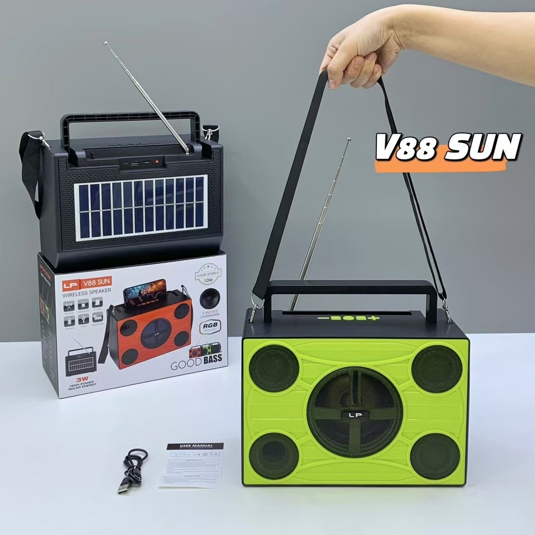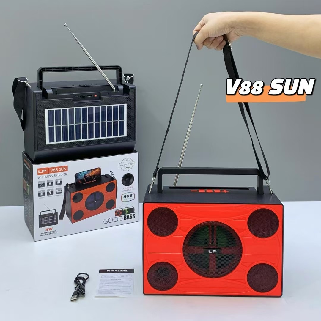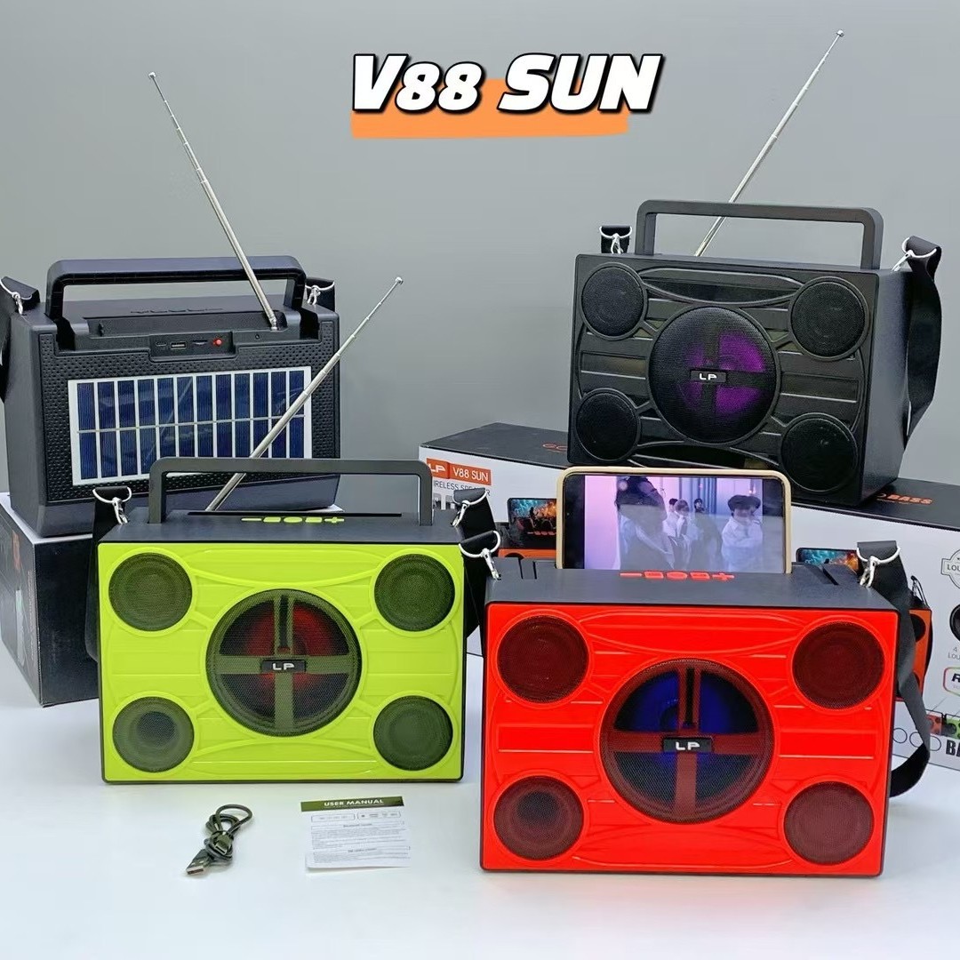 african new v88 sun solar portable portable strap radio outdoor high-power rgb bluetooth speaker