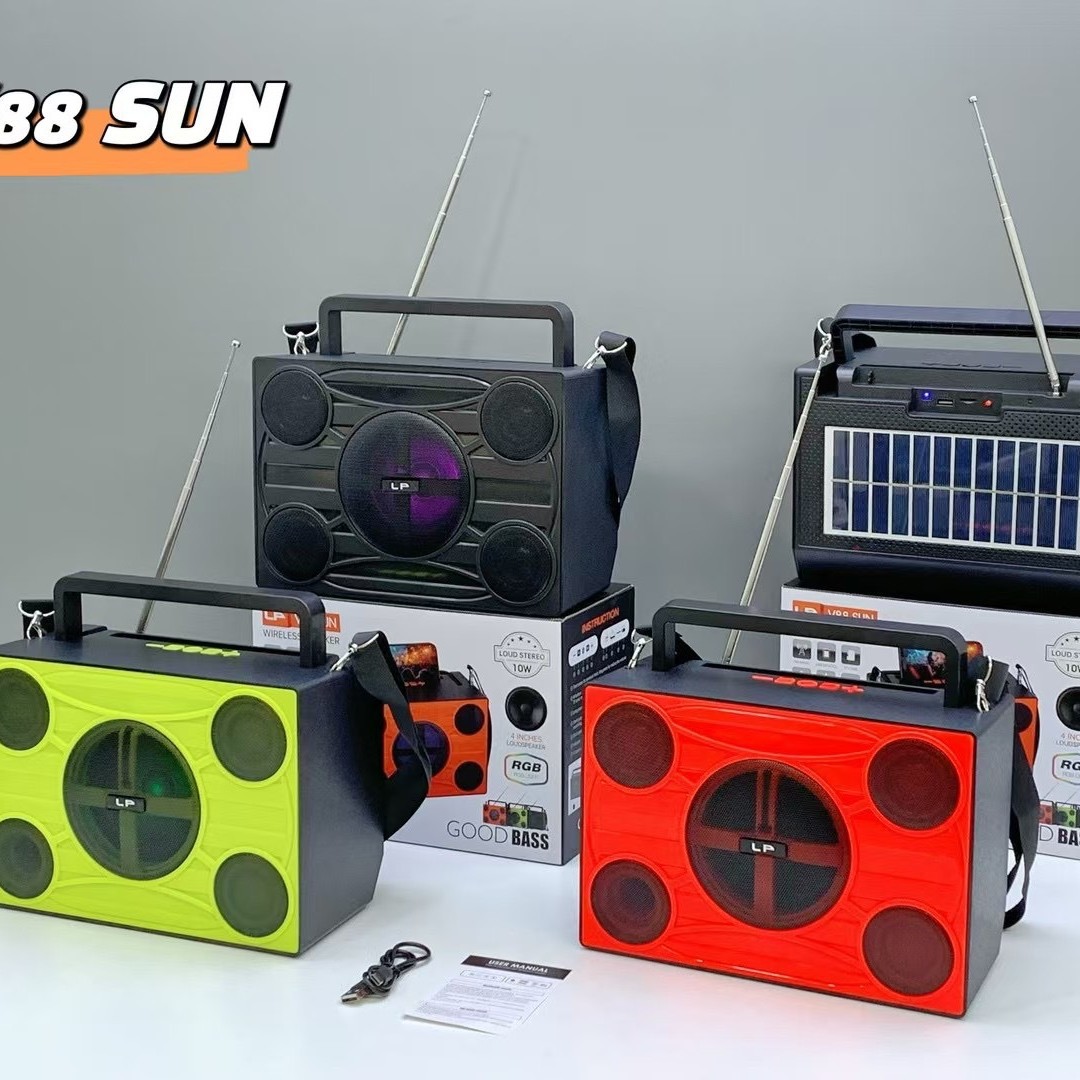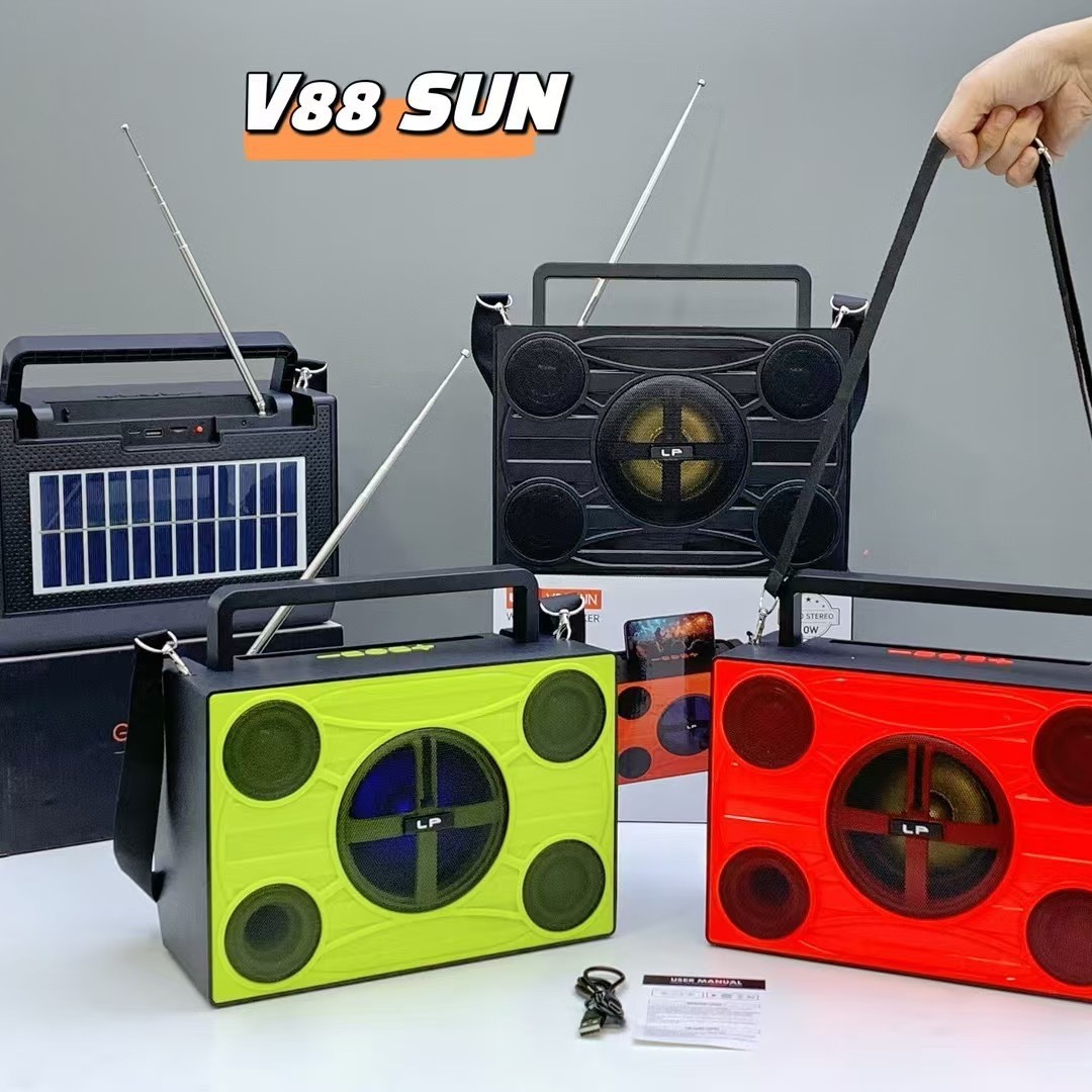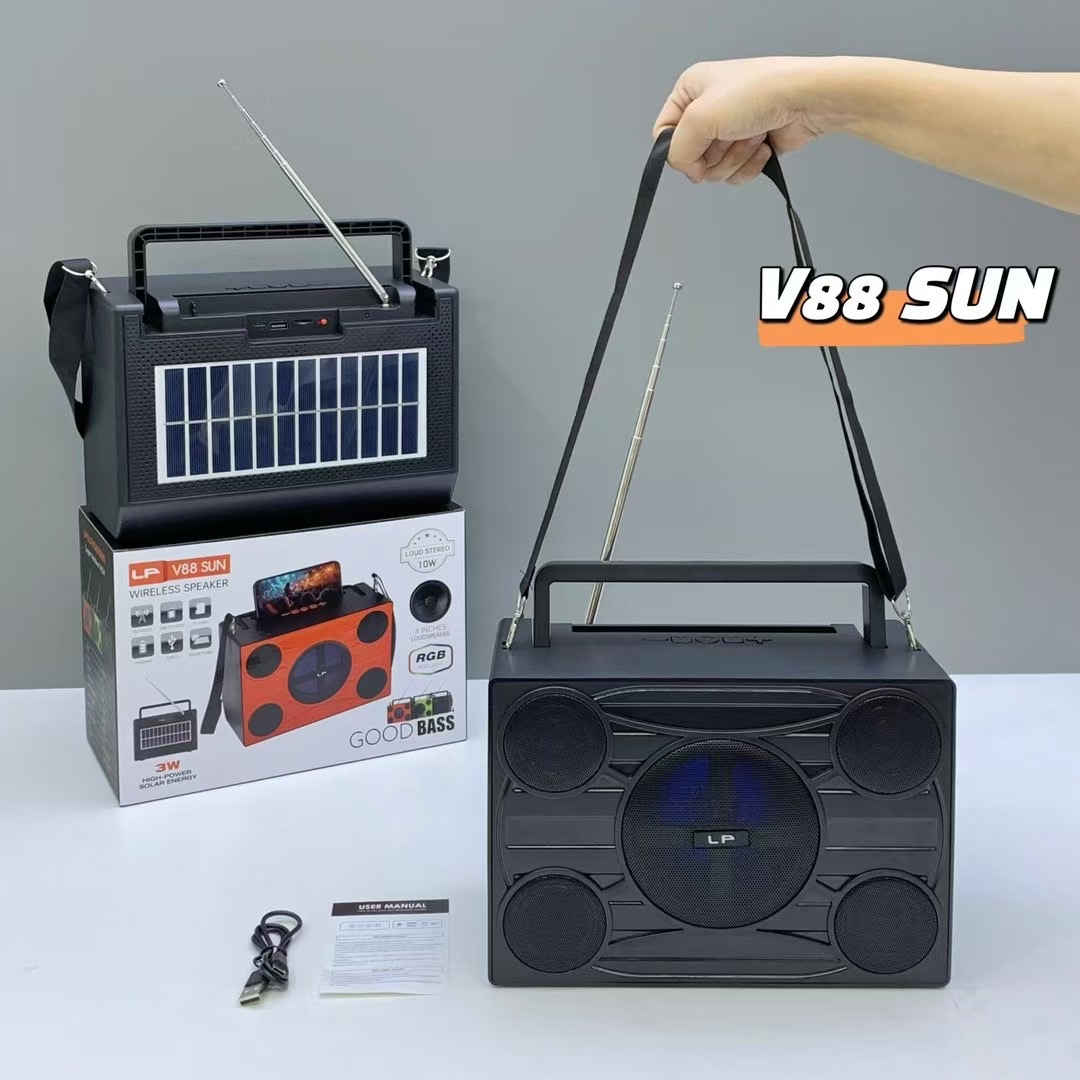 african new v88 sun solar portable portable strap radio outdoor high-power rgb bluetooth speaker