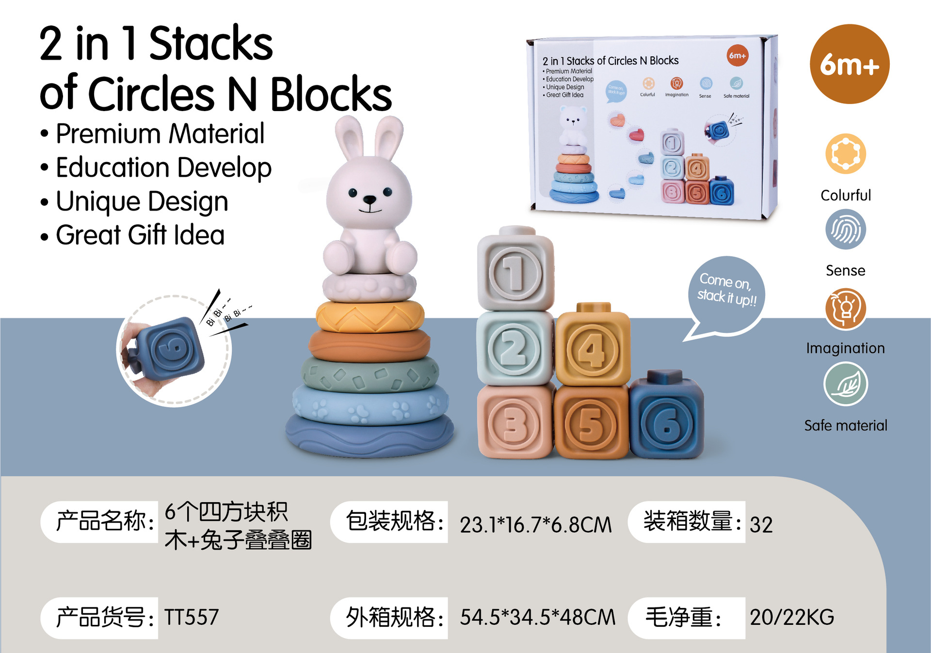 6 cognitive blocks soft building blocks + rabbit + jenga