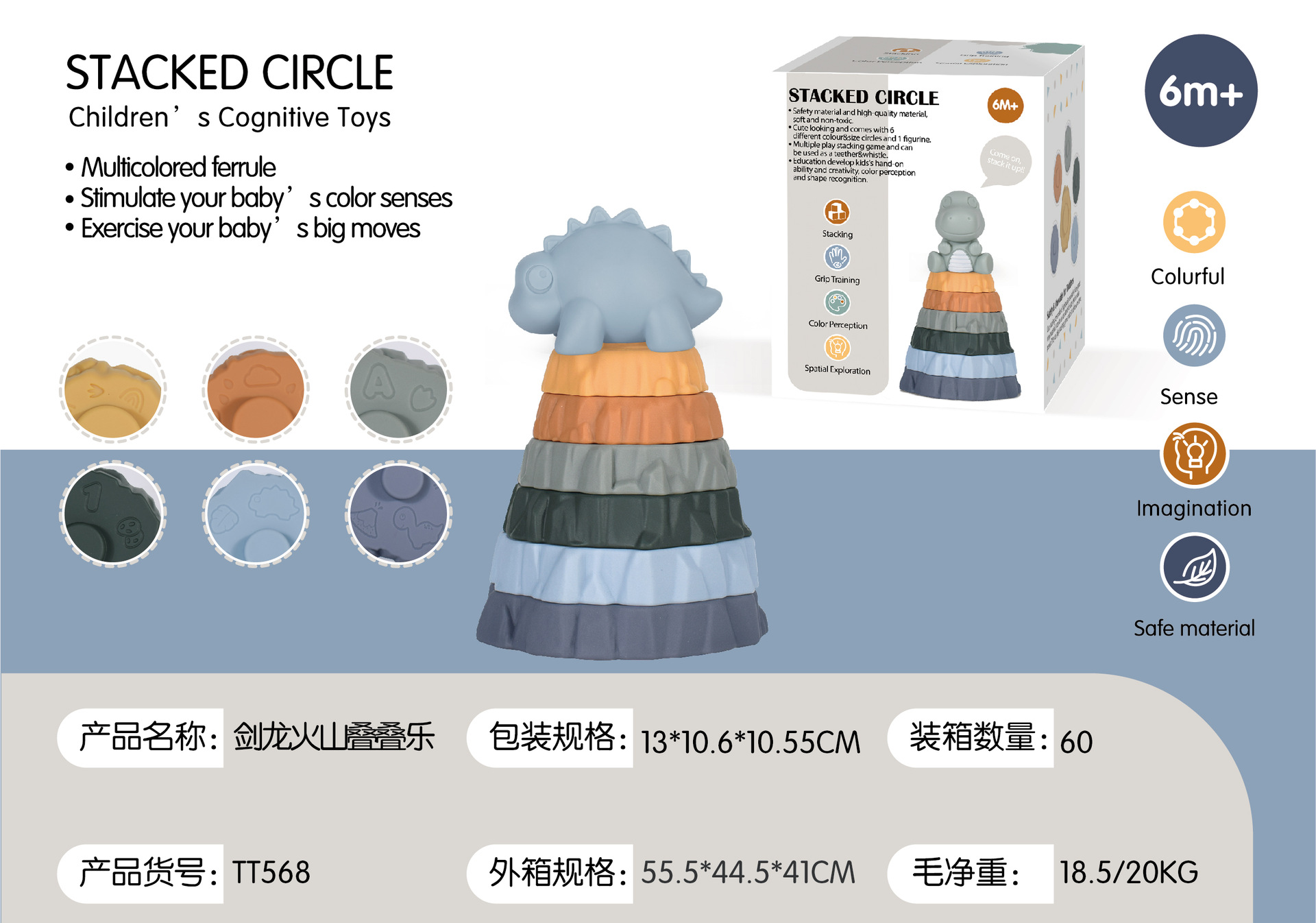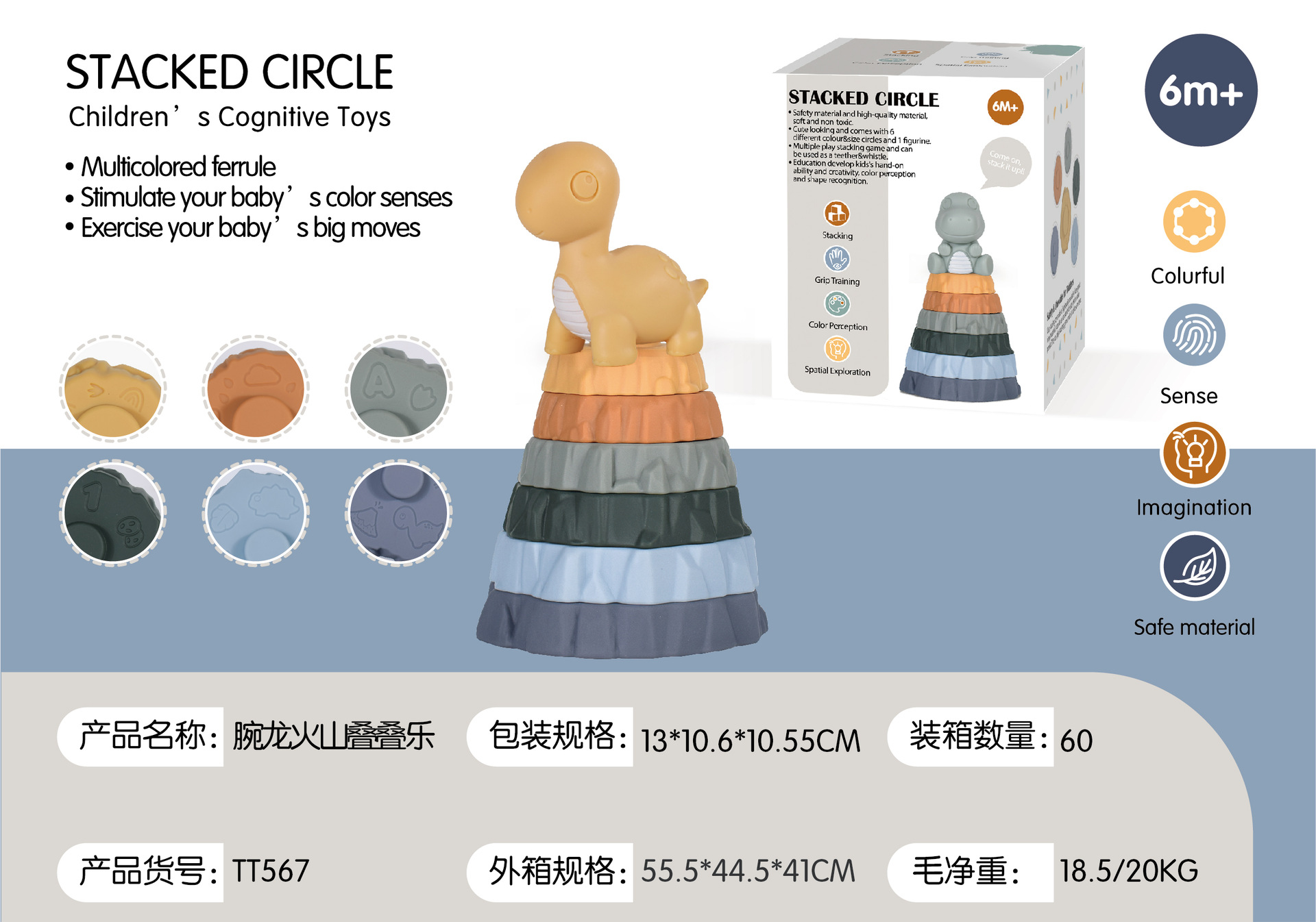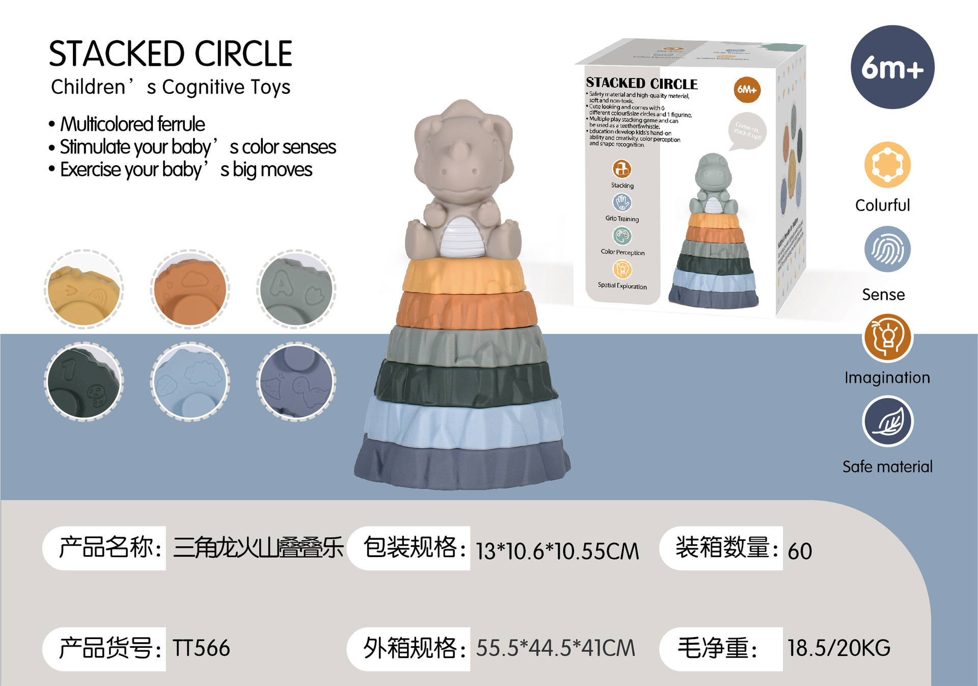 triceratops volcano jenga +6 cognitive cubes soft building blocks