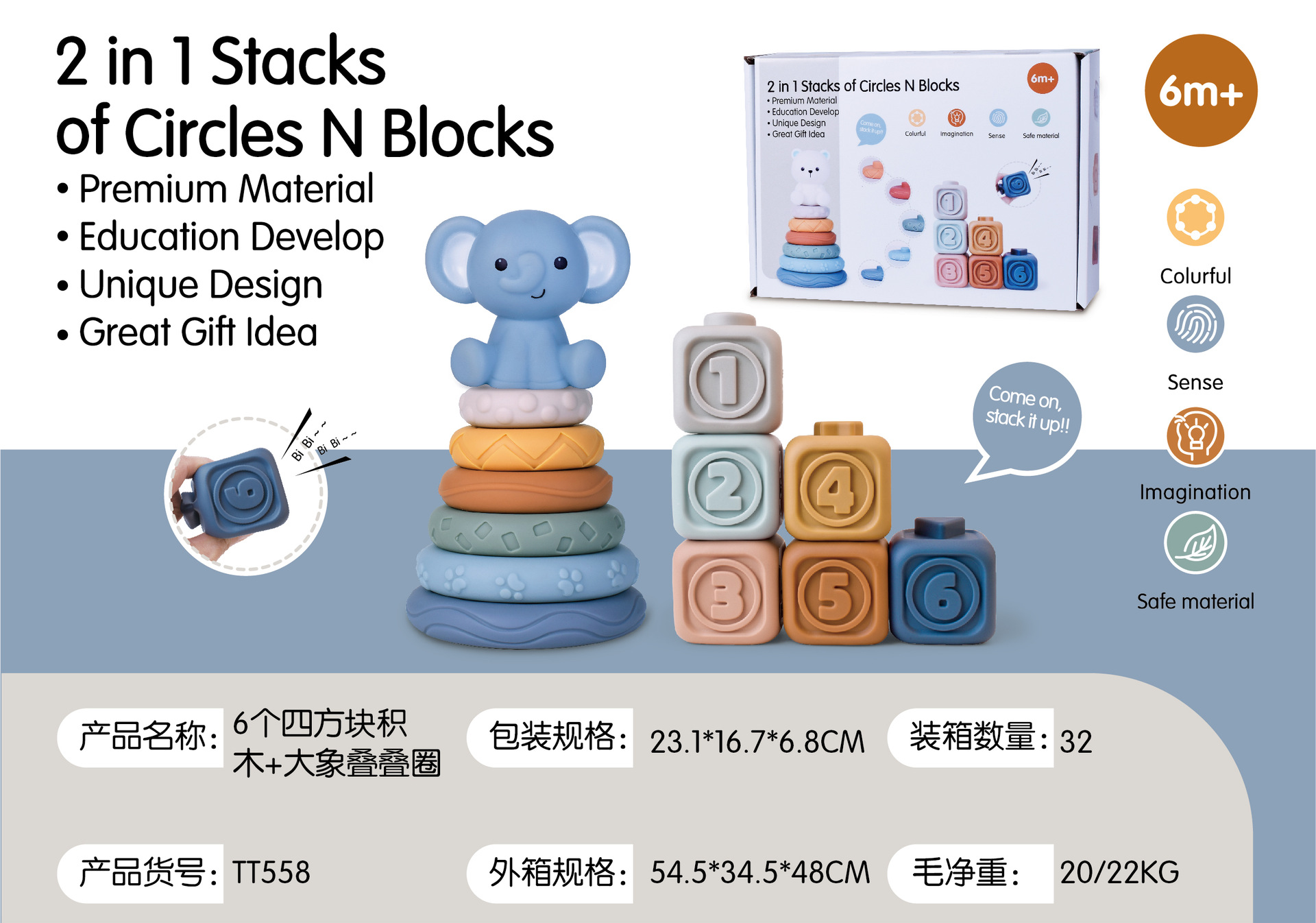 6 cognitive blocks soft building blocks + elephant + jenga