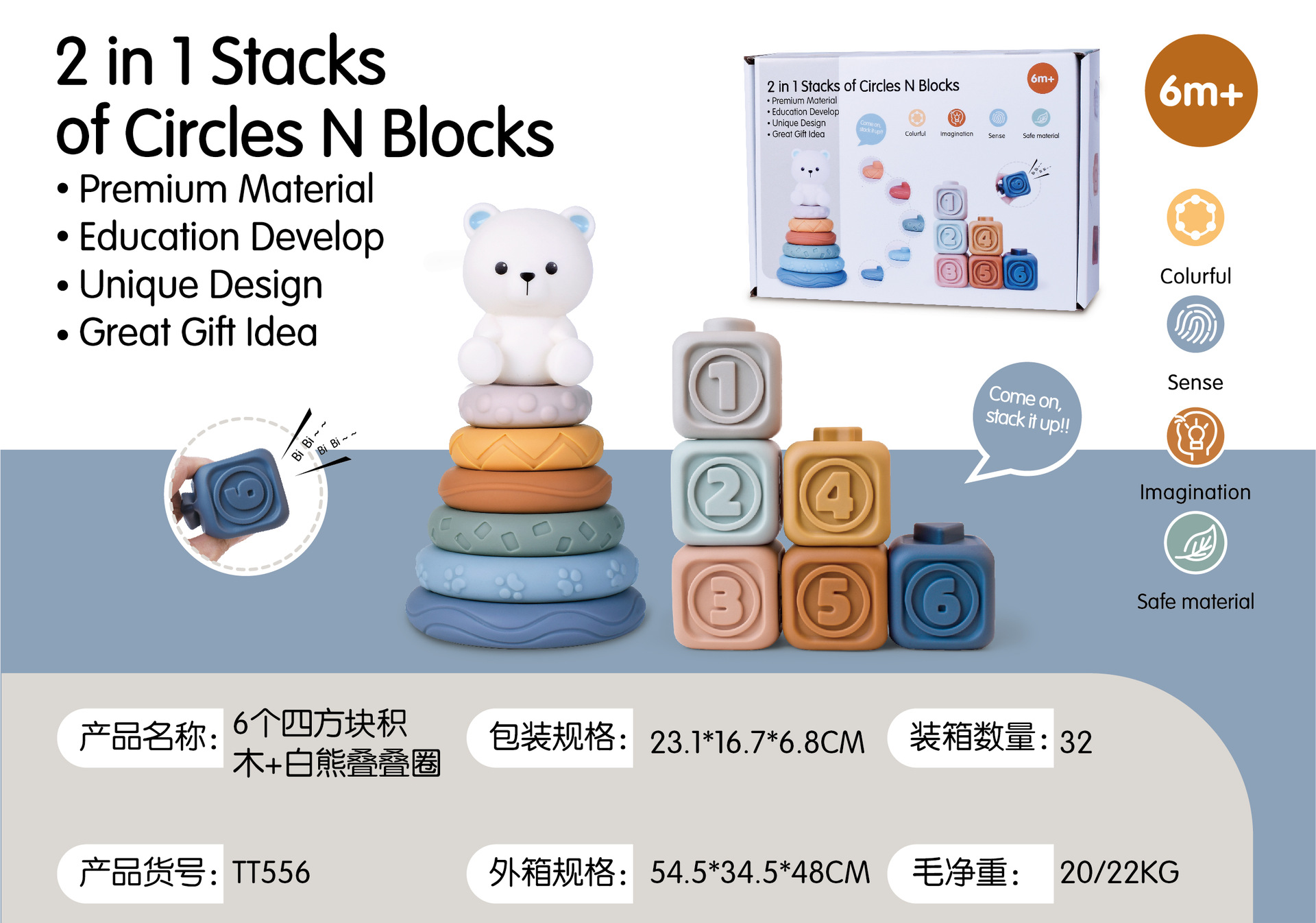 6 cognitive blocks soft building blocks + white bear + jenga