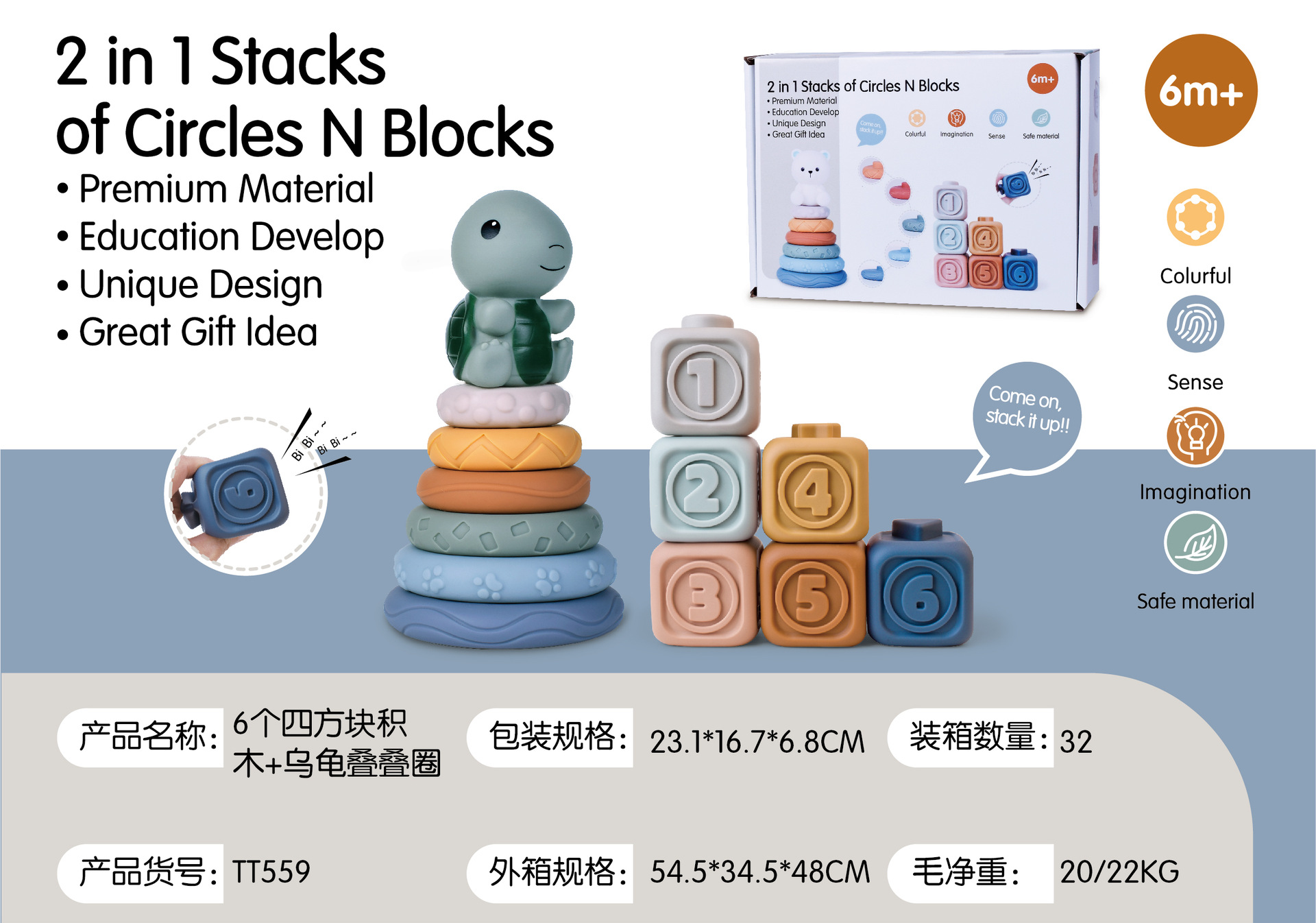 6 cognitive blocks soft building blocks + turtle + jenga