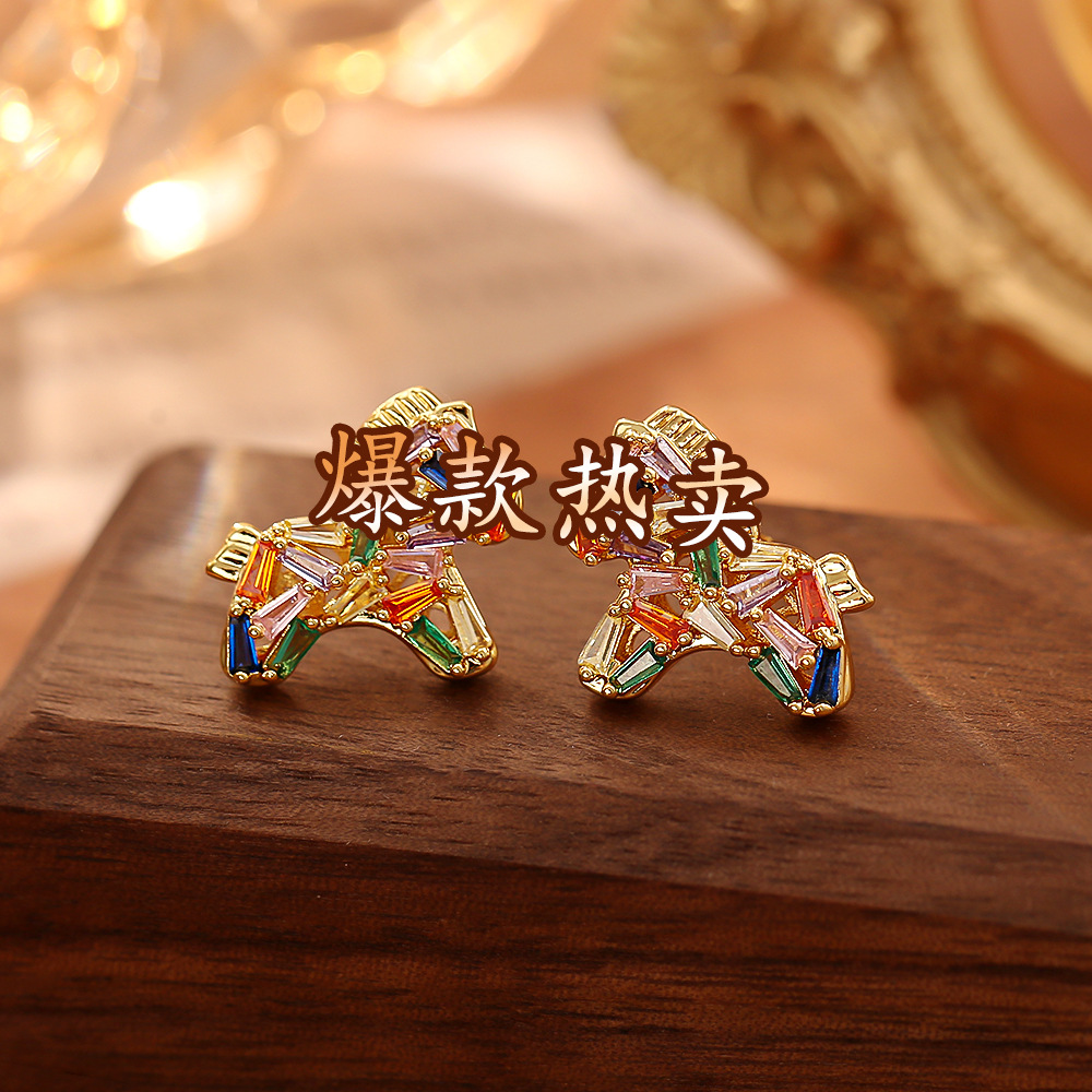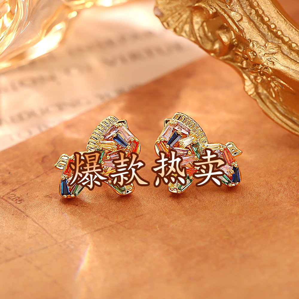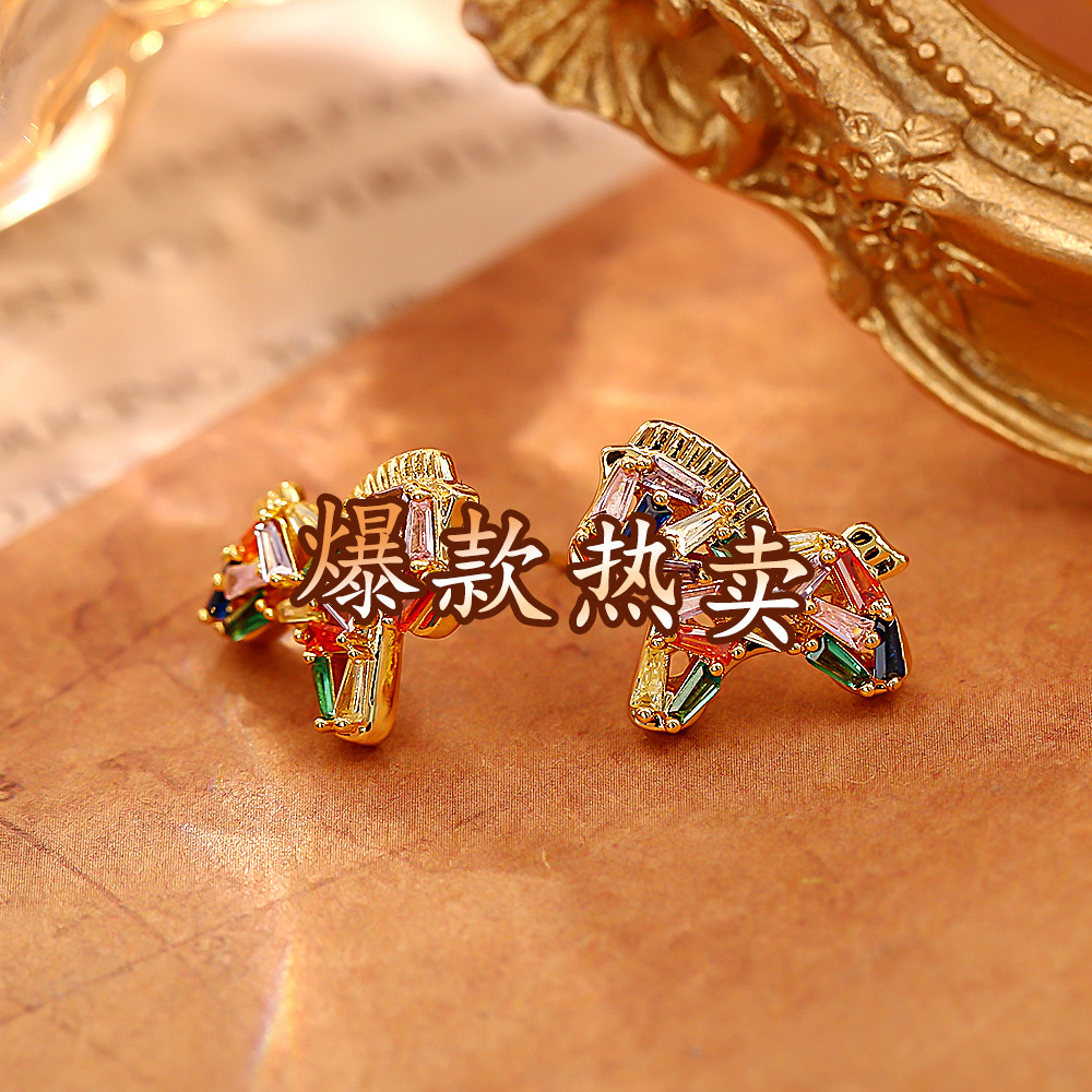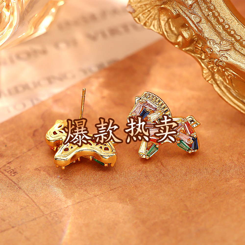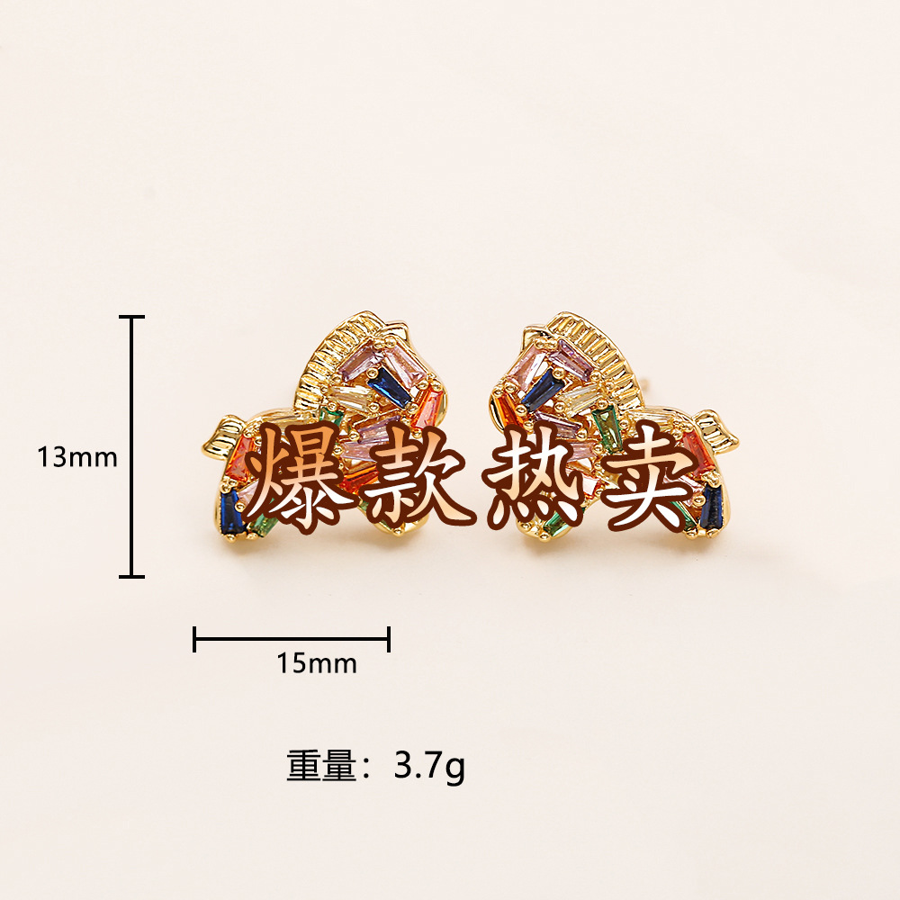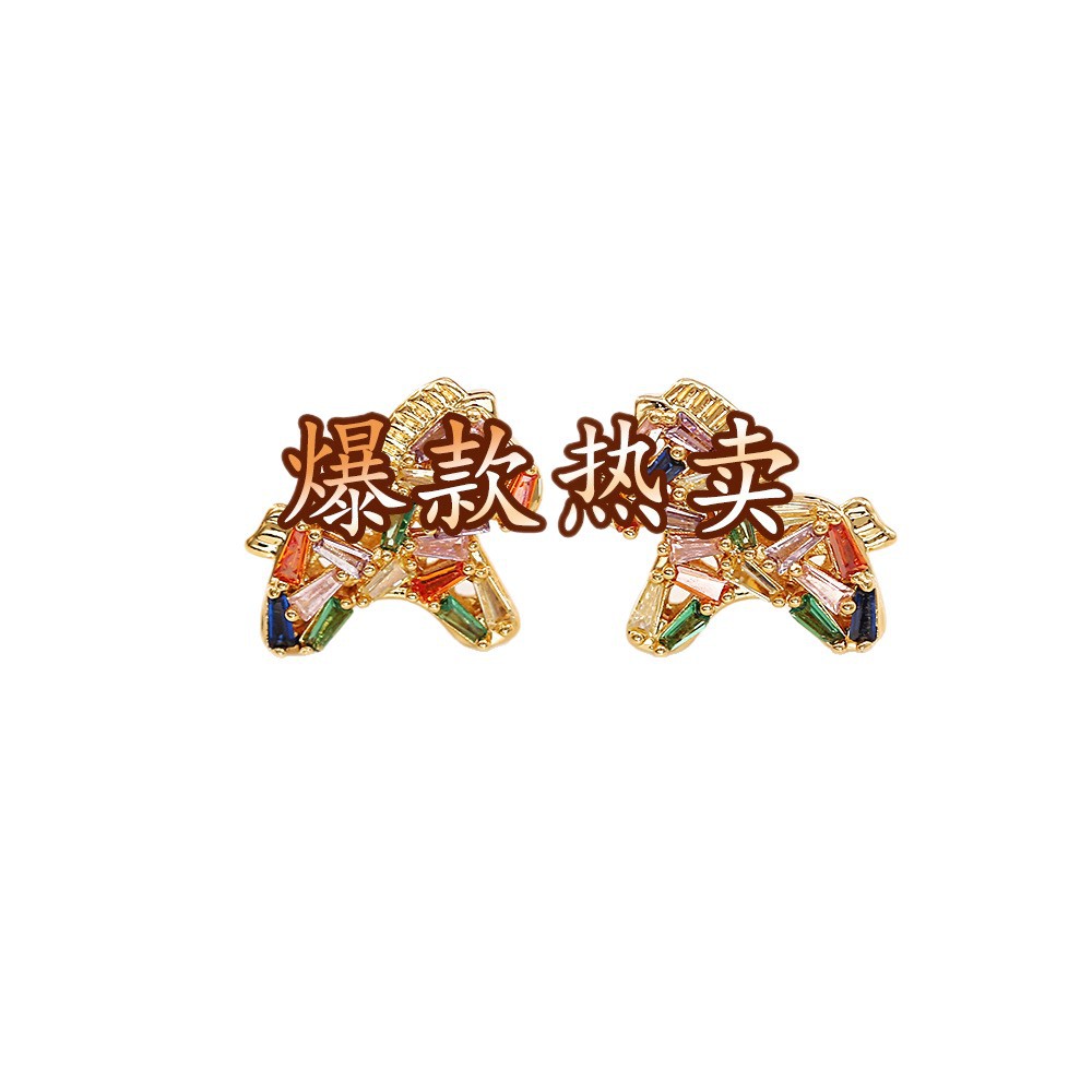 colorful crystal zircon pony ear studs (thick real gold color retention)