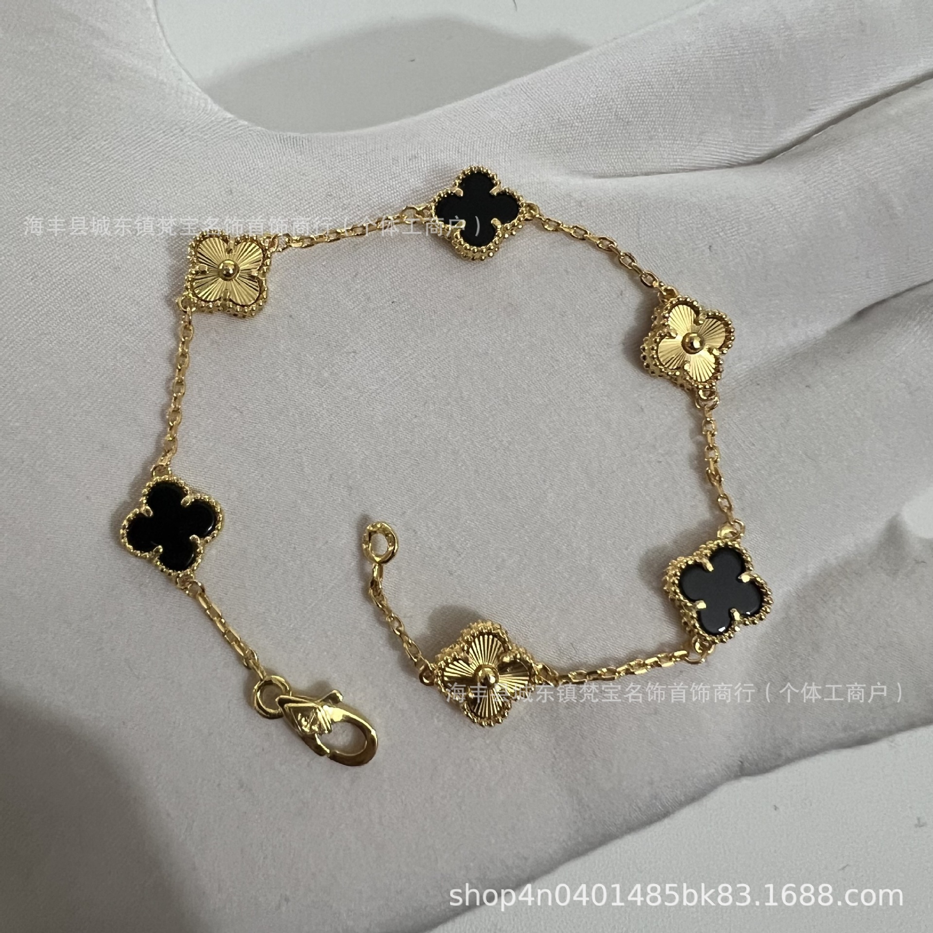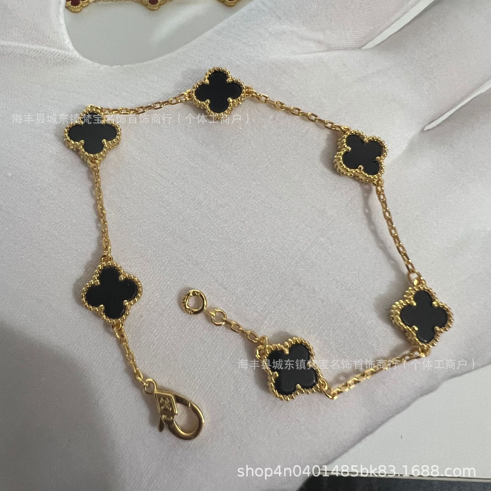 white gold color [black agate] mini six flower bracelet