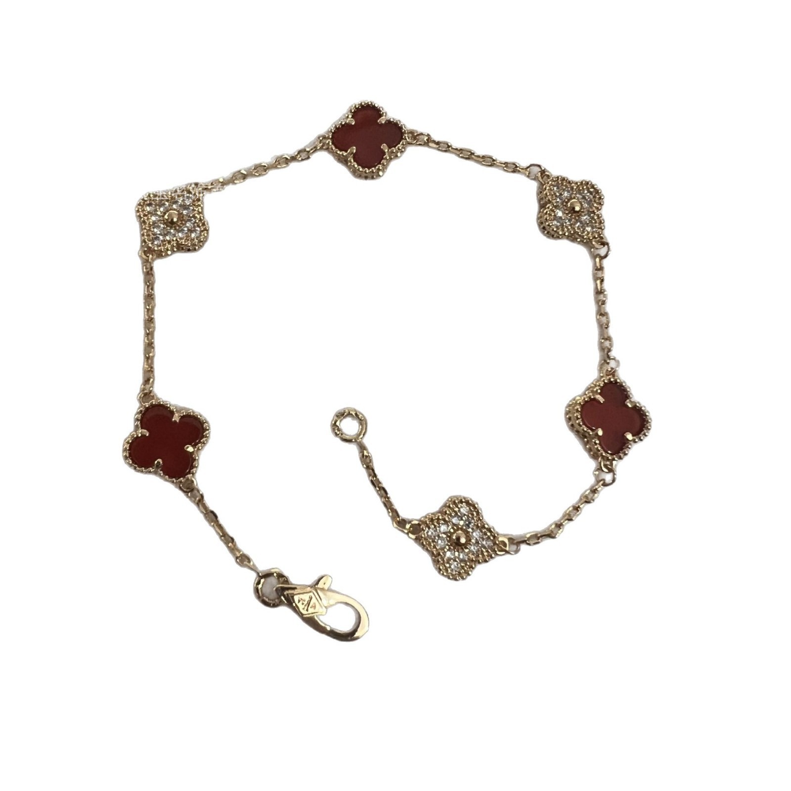 white gold color [red agate diamonds] mini six flower bracelet