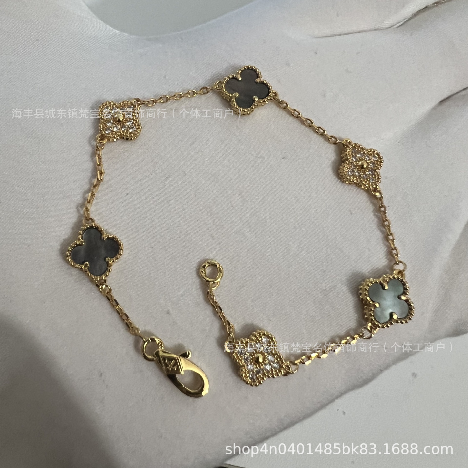 white gold color [malachite diamonds] mini six flower bracelet