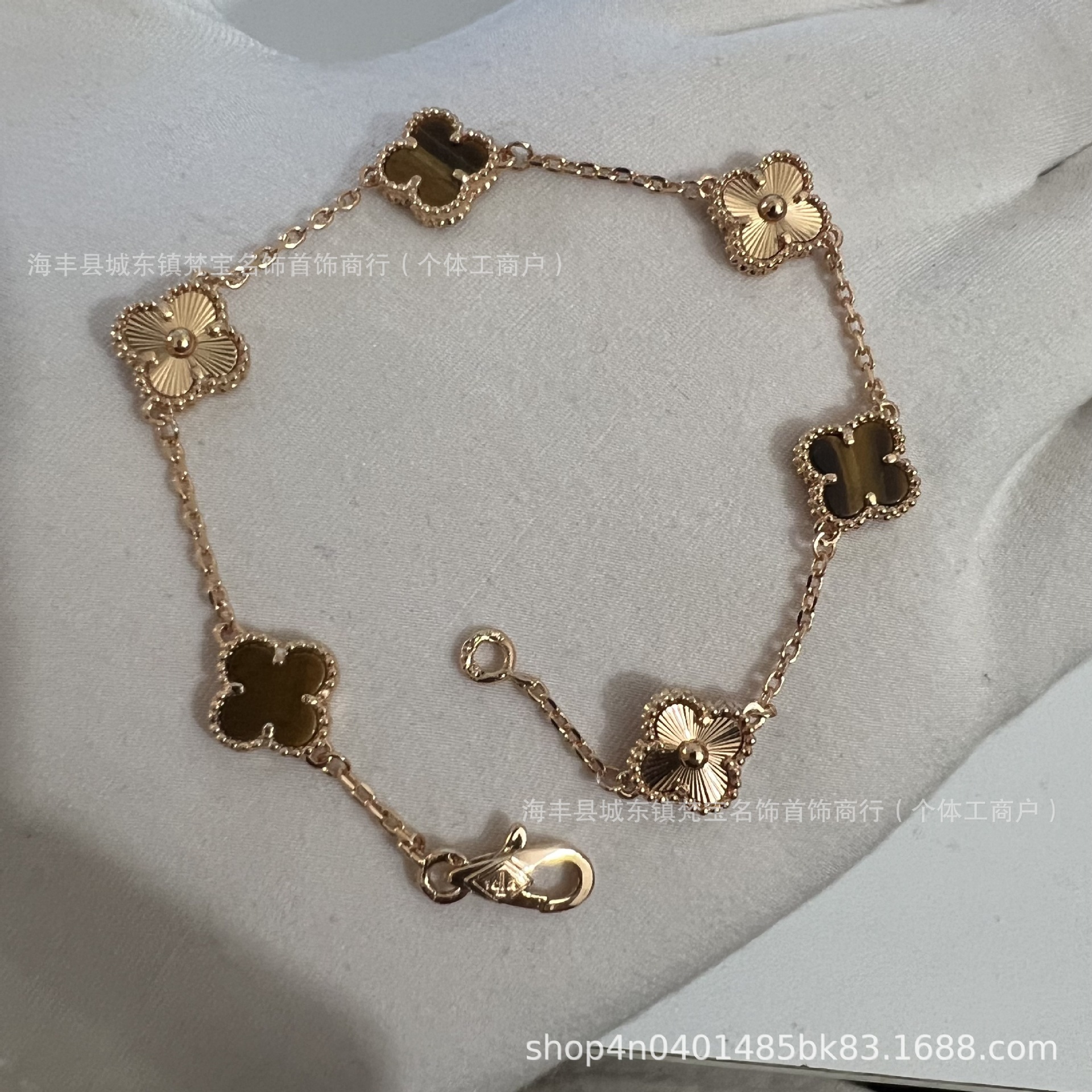 white gold color [tigereye] mini six flower bracelet