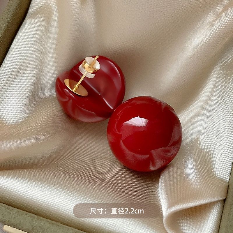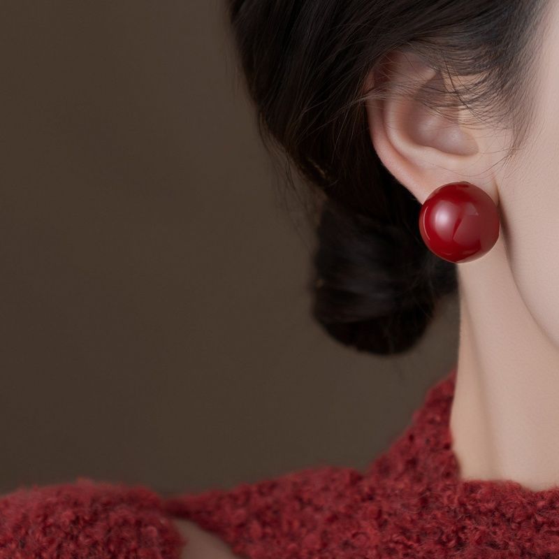 new year red bite pearl stud earrings