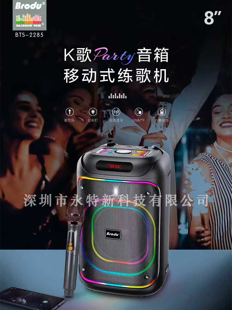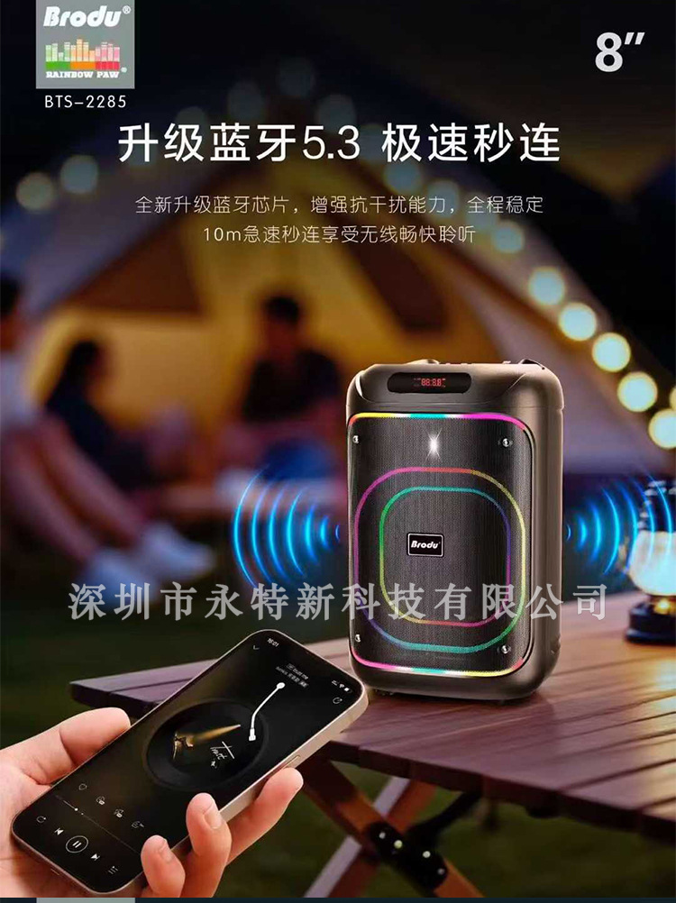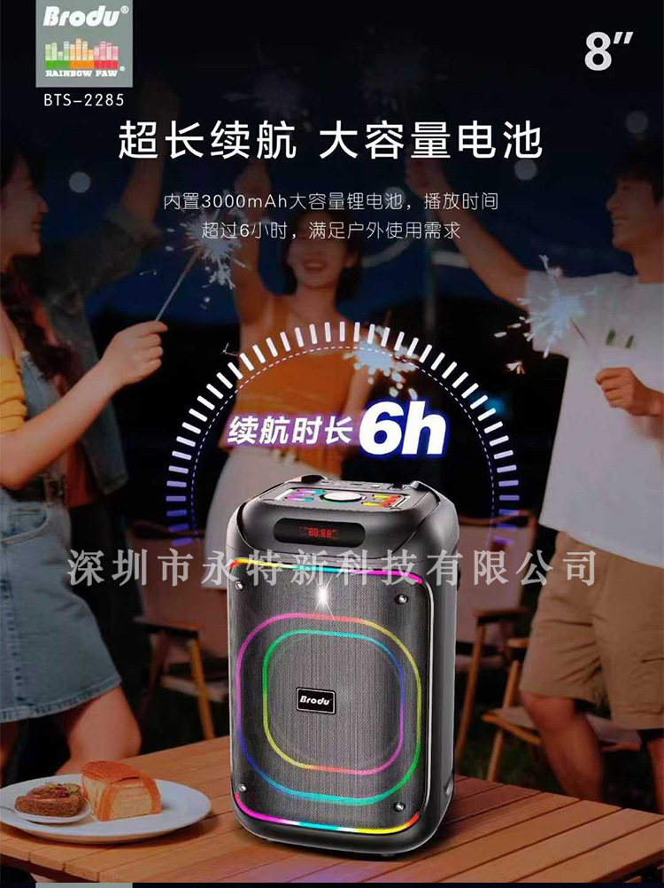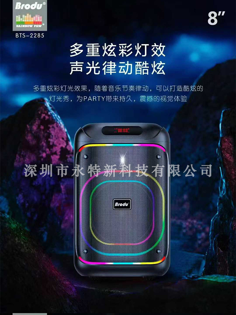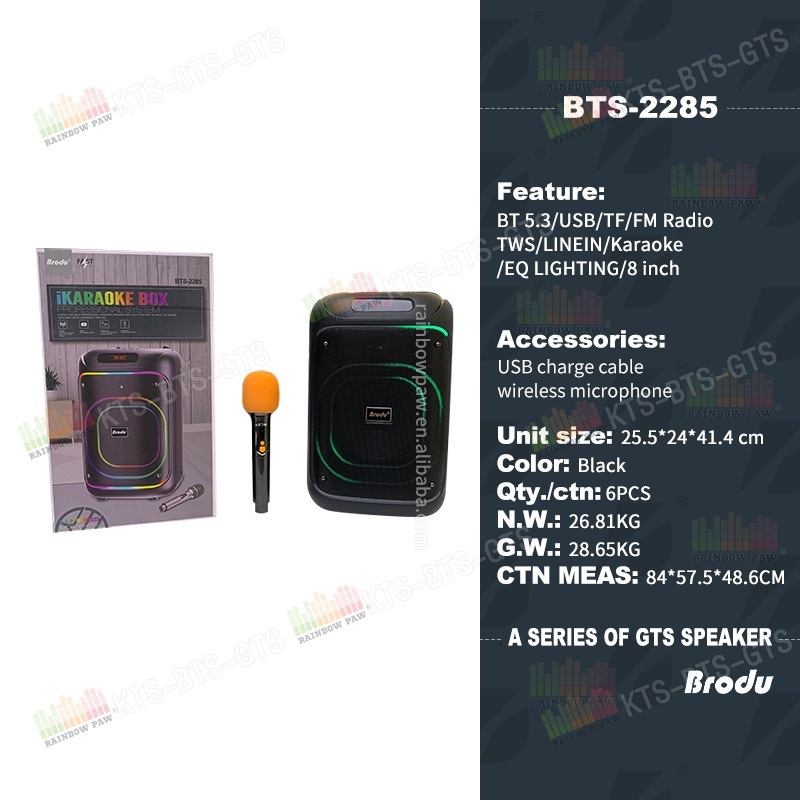 kts factory wholesale brodu series bts-2258 8-inch portable rgb lamp wireless bluetooth speaker