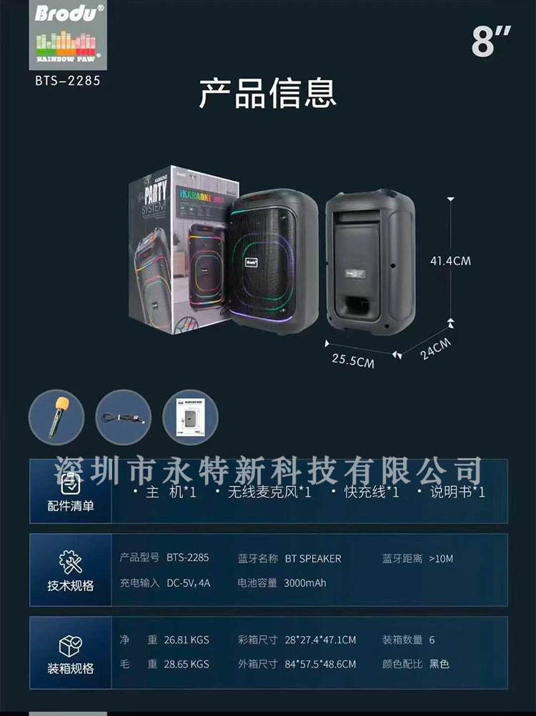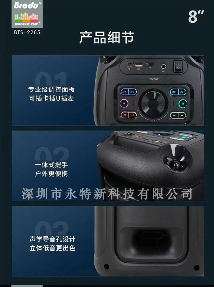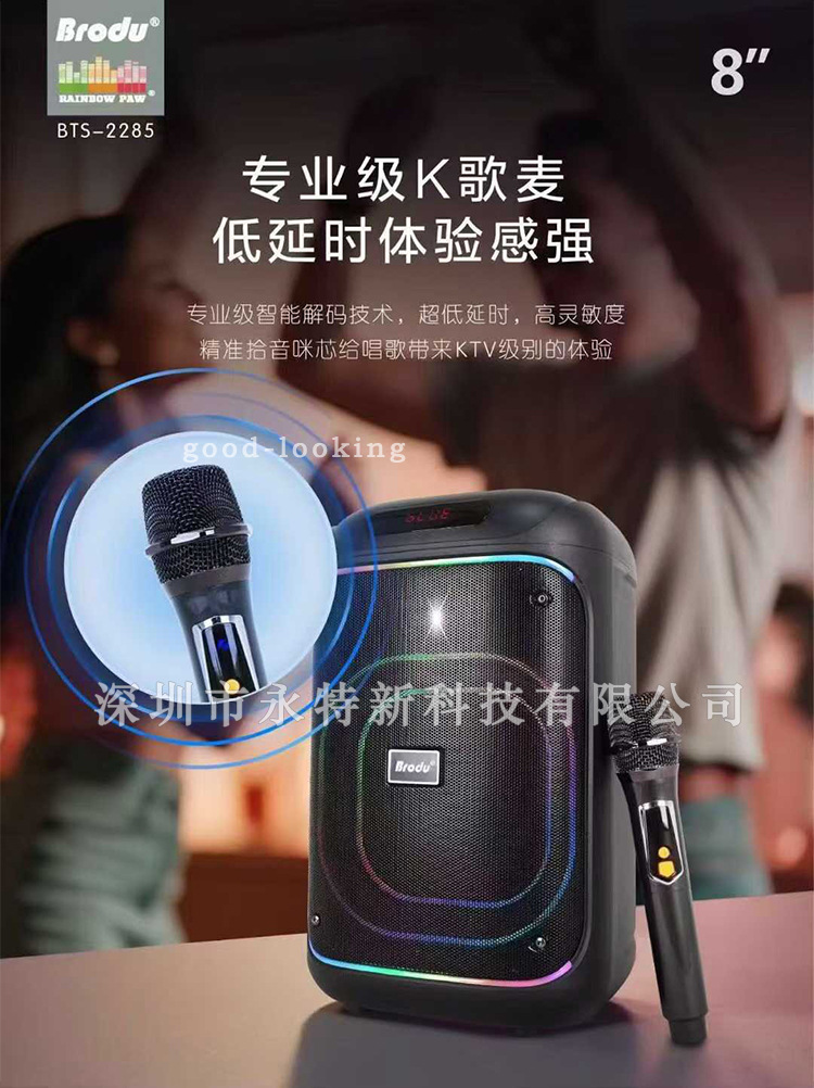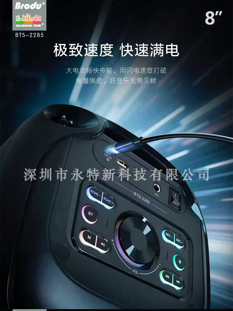 kts factory wholesale brodu series bts-2258 8-inch portable rgb lamp wireless bluetooth speaker